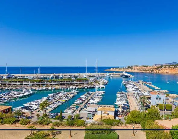 Das modern renovierte Penthaus verfügt über Fußbodenheizung, Klimaanlage und eine voll ausgestattete Miele-Küche. Der großzügige Wohn-Essbereich öffnet sich zu einer 15 m² großen, überdachten Terrasse mit vollständiger Verglasung. Sie ist ganzjährig nutzbar und bietet einen herrlichen Panoramablick über Hafen und Meer. Die flexibel zu öffnenden Glaselemente und die Südwest-Ausrichtung garantieren viel Sonne und ein helles Ambiente.