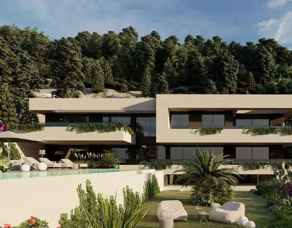 Dieses 2.452 m² große Grundstück befindet sich in einer der begehrtesten Wohnlagen des Südwestens Mallorcas, der Villenurbanisatin Son Vida, in unmittelbarer Nachbarschaft des gleichnamigen Golfplatzes und zweier 5-Sterne-Hotels. Zwei Yachthäfen, Strände, das Zentrum von Palma und den Flughafen erreicht man in wenigen Autominuten. Das Vor-Projekt sieht eine moderne 6-Schlafzimmer-Villa in minimalistischer Architektur mit einer Wohnfläche von 720 m² und drei Etagen vor. Im Erdgeschoss liegt der großzügige Wohnbereich, das Esszimmer mit offener Küche, ein Schlafzimmer mit Bad en Suite und Ankleide sowie ein Gäste-WC. Im Obergeschoss bietet die Immobilie insgesamt vier Schlafzimmersuiten (zwei mit Ankleideräumen) und ein Wohnzimmer. Im großzügigen Untergeschoss befinden sich ein Schlafzimmer, ein Badezimmer, ein Kinoraum, ein großer Wellnessbereich mit Indoor Pool und Fitnessstudio, ein Technikraum, ein Gäste-WC und eine Garage für bis zu drei Fahrzeuge. Der Außenbereich des Hauses bietet drei Freiterrassen, zwei überdachte Terrassen, einen schön angelegten Garten mit Swimmingpool.