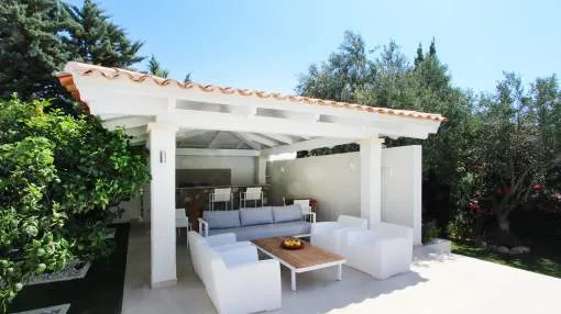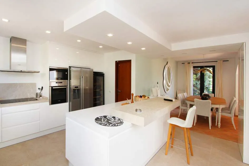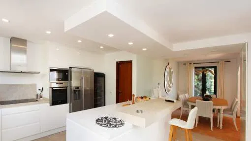 Die exklusive Villa befindet sich in Santa Ponsa, bekannt für die beeindruckende Küstenlandschaft, luxuriösen Anwesen und erstklassigen Freizeitmöglichkeiten. Santa Ponsa bietet eine perfekte Mischung aus natürlicher Schönheit und modernem Komfort, was sie zu einem idealen Wohnort für Familien und Ruhesuchende macht. In unmittelbarer Nähe befinden sich mehrere traumhafte Strände, die zum Sonnenbaden und Wassersport einladen. Die Umgebung ist auch bei Golfliebhabern sehr beliebt, da sie mehrere renommierte Golfplätze bietet. Darüber hinaus finden sich in Santa Ponsa zahlreiche Restaurants, exklusive Boutiquen und diverse Einkaufsmöglichkeiten, die keine Wünsche offenlassen.