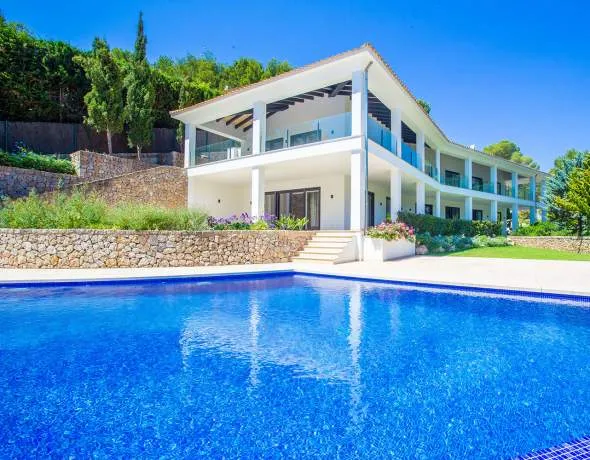 Die kernsanierte, moderne Villa liegt ruhig oberhalb einer Badebucht und nahe dem Sandstrand von Cala Fornells in zweiter Meereslinie. Der Ortskern von Paguera mit Geschäften und Restaurants ist schnell erreichbar, ebenso der Yachthafen Port Andratx und der Golfplatz in Camp de Mar.