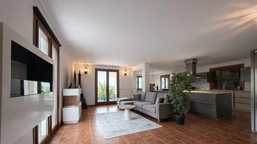 Objektbeschreibung: Zwischen Alcúdia und Pollença empfängt Sie dieses lichtdurchflutete Landhaus mit der Ruhe des Nordens und Blicken, die vom Tramuntana-Gebirge bis zum Meer reichen. Auf rund 15.854 m² mit Olivenbäumen und reifen Gärten entfaltet sich ein Ort, der das mediterrane Draußenleben zelebriert: sonnige und überdachte Terrassen, privater Pool und viel Raum für lange Sommertage. Im Inneren überzeugt die Finca durch Großzügigkeit und Klarheit. Das Erdgeschoss öffnet sich von der Eingangshalle in ein weites Wohnzimmer mit zwei Ausgangsseiten, eine moderne, angrenzende Küche und ein separates Esszimmer – perfekt für gesellige Abende. Vier Doppelschlafzimmer mit Bad en suite bieten Komfort auf einer Ebene und machen das Haus ideal für Familie und Gäste. Im Obergeschoss warten die Master-Suite mit eigenem Bad, ein Büro und ein zusätzlicher Raum für Ankleide, Fitness oder Rückzug. 363 m² bebaute Fläche, Holzschreinerei, geflieste Böden und viel Licht schaffen ein warmes, hochwertiges Ambiente, das sofort ankommt – im Alltag wie im Urlaub. Technisch ist alles auf entspanntes Wohnen ausgelegt: Klimaanlage warm/kalt, Öl-Zentralheizung, Doppelverglasung und Kamin für gemütliche Winterabende. Glasfaser-Internet hält Sie verbunden, Brunnenwasser, Wasserzisterne und automatische Bewässerung sorgen für effiziente Versorgung. Zwei Stellplätze runden das Angebot ab. Die Lage vereint Ruhe und Nähe: In ca. 10 Minuten erreichen Sie Alcúdias mittelalterliche Gassen oder den Yachthafen Puerto Alcúdia mit seinem 7-km-Sandstrand. Golfer freuen sich über mehrere Plätze in 5–10 Minuten, darunter das renommierte Alcanada Golf direkt am Meer – ein seltener Mix aus ländlicher Idylle und bester Anbindung, ganzjährig. Besonders wertvoll: die Ferienvermietungslizenz (ETV). In Kombination mit 5 Schlafzimmern/5 Bädern, großzügigen Gemeinschaftsflächen, Pool und Panorama entsteht eine erstklassige Investitionsmöglichkeit mit spürbarem Einnahmepotenzial. Ein Haus, das Herzen gewinnt und Zahlen überzeugt. Hier finden Sie weitere interessante Informationen zu diesem Objekt: Rendite aus Ferienvermietung: Mit dem „Porta Holiday Renditerechner“ können Sie zur ersten Orientierung unverbindlich Ihre potenziellen Einnahmen aus einer möglichen Ferienvermietung berechnen. Hinweis: Aufgrund der aktuellen Gesetzeslage kann es in bestimmten Gemeinden zu einer Beschränkung der Vermietbarkeit kommen bzw. werden keine neuen touristischen Lizenzen mehr vergeben. Ihr Porta Mallorquina Immobilienberater berät Sie gerne, ob die von Ihnen gewählte Immobilie davon betroffen ist. Hier geht’s zum Renditerechner. Lage & Umgebung: Alcudia, welches im Mittelalter tatsächlich einmal die ursprüngliche Hauptstadt Mallorcas war, bietet neben einer der längsten Strandpromenaden der Insel und einer dementsprechend perfekt ausgebauten Infrastruktur, auch so einige sehr interessante Teilgebiete, die Sie sich unbedingt einmal zu Gemüte führen sollten. Umgeben von einer imposanten Stadtmauer, bietet die Altstadt Alcudias ein auffällig sauberes und durchgehend geordnetes Ambiente und versprüht vor allem zur frühen Abendzeit einen einmaligen Charme. Vielerlei Bars und Restaurants jeglicher Couleur verteilen sich über diesen Ort und es ist für jeden Geschmack etwas dabei. Auch sollte man den ausgiebigen Markt jeweils Dienstags und Sonntags auf keinen Fall verpassen. Alcudia, welches geografisch gesehen auf einer Halbinsel liegt bietet aber zudem auch zwei sehr interessante Villenviertel: Bonaire im nördlichen und Aucanada im südlichen Teil.