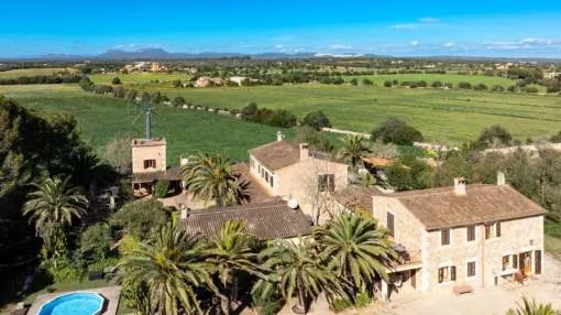 Diese außergewöhnliche Finca liegt auf einem rund 1,5 Hektar großen Grundstück nahe Campos und vereint auf einzigartige Weise mediterranen Charme mit modernem Wohnkomfort. Umgeben von Natur bietet sie einen Ort der Ruhe, der Inspiration und der vielfältigen Möglichkeiten. Mit einer bebauten Fläche von etwa 560 Quadratmetern umfasst das Anwesen insgesamt acht Schlafzimmer und neun Bäder, von denen fünf en-suite gestaltet sind. Mehrere Gästeapartments sorgen zusätzlich für Flexibilität bei der Nutzung.