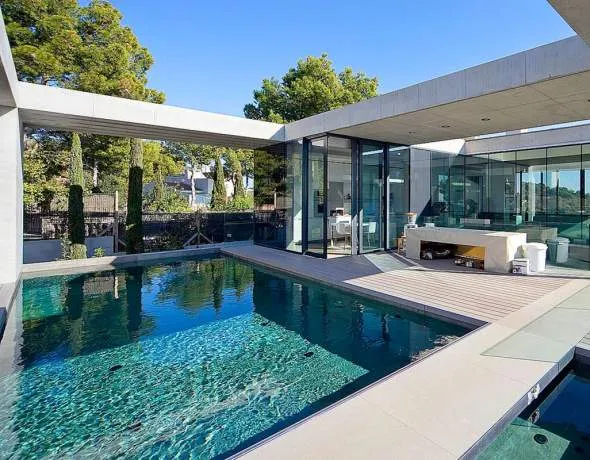 Diese Mallorca Immobilie in Süd/West-Lage wurde mit hochwertigen Materialien gebaut und befindet sich in einem der begehrtesten Wohnbereiche von Costa d´en Blanes, nur ein paar Autominuten von dem eleganten Yachthafen von Puerto Portals entfernt und in der Nähe internationaler Schulen. Diese 4 Schlafzimmer, 4 Badezimmer Villa befindet sich auf einem 1.088 m2 grossen Grundstück und hat eine bebaute Fläche von 517 m2 inklusive 70 m2 überdachte Terrassen und 100 m2 offene Terrassen. Weitere Ausstattungsmerkmale sind: Klimaanlage kalt/warm, Fussbodenheizung, Schotten & Hansen Böden, Doppelverglasung, Domotik System, Aufzug, Pool, Whirpool und eine Garage fuer 2-3 Pkws. Für weitere Informationen über Immobilien auf Mallorca kontaktieren Sie bitte FIRST MALLORCA per E-Mail oder Telefon im Hauptbüro in Costa d´en Blanes (+34) 971 679 444