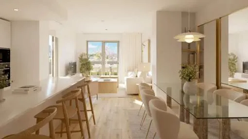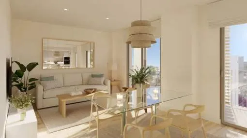 Dieser neue Komplex befindet sich in Palmanova, einem Wohngebiet von Calviá, direkt am Strand. Sie brauchen nur wenige Minuten, um ein entspannendes Bad im Meer zu nehmen oder einen angenehmen Spaziergang entlang der Mittelmeerküste zu unternehmen. Außerdem befindet sich Ihr neues Zuhause in einem Viertel, das den Komfort bietet, nur 15 Minuten vom Zentrum Palmas und 30 Minuten vom Flughafen entfernt zu wohnen. Entspannen Sie sich bei ausgedehnten Strandspaziergängen, einem Bad im Meer oder genießen Sie das vielfältige Angebot an Dienstleistungen aller Art, ohne auf eine hervorragende Kommunikation zu verzichten. In der Nähe des Komplexes finden Sie alle Dienstleistungen, die Sie benötigen, und daher ist es der perfekte Ort, wenn Sie auf der Suche nach einem ruhigen Leben sind, ohne auf die Annehmlichkeiten der Stadt zu verzichten. Das Projekt wurde von einem der renommiertesten Architekturbüros Spaniens entworfen und hat zahlreiche nationale und internationale Auszeichnungen erhalten. Die Wohnungen öffnen sich durch große Fenster nach außen und bieten viel Licht und eine einzigartige Atmosphäre. Und damit Sie das hervorragende Klima der Insel genießen können, geht das Wohnzimmer Ihres Hauses über eine große Terrasse nach draußen über, die zweifellos einer der Lieblingsplätze in Ihrem neuen Zuhause sein wird. Jede Tageszeit, eine Geburtstagsfeier, ein Jahrestag oder ein einfacher Sonntagnachmittag kann zum besten Plan werden, wenn man ihn im Freien genießt. Zögern Sie nicht, das Team von First Mallorca zu kontaktieren, um einen Besichtigungstermin zu vereinbaren!