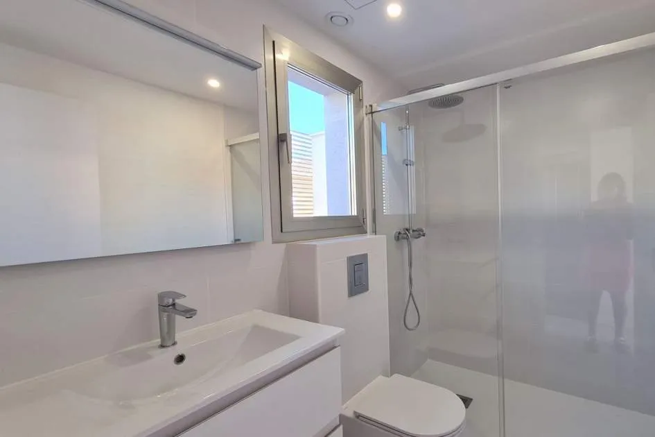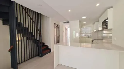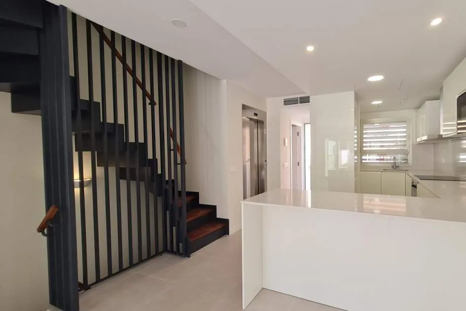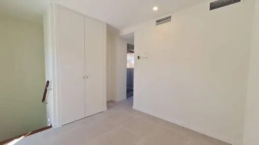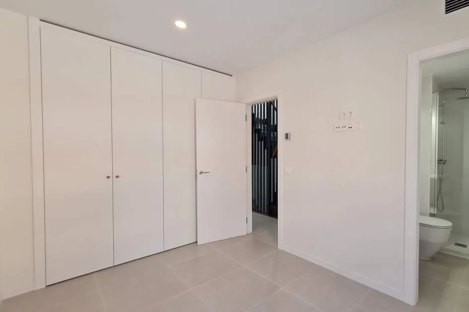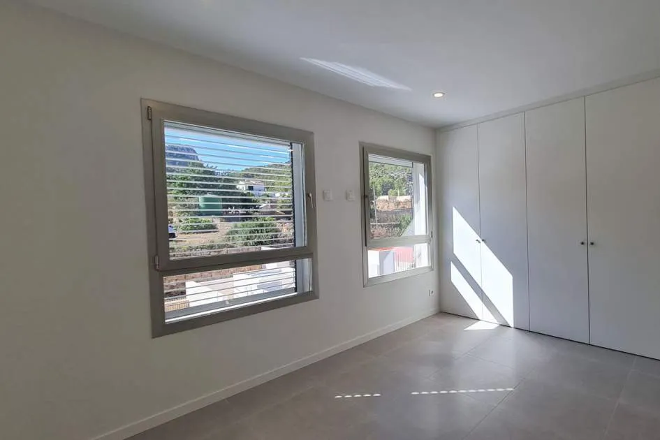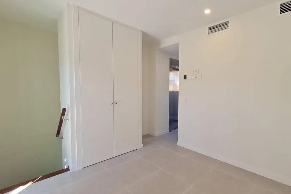 Dieses brandneue Stadthaus ist der ideale Ort, um das ganze Jahr über zu wohnen oder es als Zweitwohnsitz zu nutzen. Die Immobilie befindet sich in einer modernen Anlage mit einem Salzwasserpool und Gemeinschaftsgärten und bietet seinen Bewohnern die Möglichkeit, den mediterranen Lebensstil zu genießen. Der Hafen, die Restaurants mit internationaler Küche, sonnige Terrassencafés, schicke Boutiquen und alle Annehmlichkeiten sind bequem zu Fuß erreichbar Nähe. Die Aufteilung erstreckt sich über 4 Etagen mit privatem Aufzug und Treppen zu allen Ebenen. Die Eingangsebene umfasst ein Gäste-WC, ein geräumiges Wohnzimmer mit offener Küche, Türen zur privaten Terrasse und zum Garten mit Zugang zu den Gemeinschaftsgärten und dem schönen Poolbereich. Im ersten Stock gibt es ein großzügiges Hauptschlafzimmer mit eigenem Bad und zusätzlich ein Doppelschlafzimmer mit eigenem Duschbad. Die obere Ebene bietet einen wunderbaren offenen Bereich, der sich ideal als Schlafzimmer oder Büro eignet und über eine private Terrasse mit Panoramablick auf die Hügel und den Gemeinschaftspool verfügt. Außerdem gibt es eine hintere Terrasse für Wäschezwecke. Alle Schlafzimmer verfügen über Einbauschränke, Hausautomationssteuerungen, elektrische oder manuelle Rollläden und einen Internet-/TV-Anschluss. Zu den weiteren Merkmalen dieser perfekten Immobilie gehören: ein wirtschaftliches Ecodan-Wärmepumpensystem für Warm- und Kaltklimatisierung und Fußbodenheizung, Doppelverglasung, Keramikböden, Halogenbeleuchtung im gesamten Gebäude, Sonnenjalousien, Osmosefiltersystem, voll ausgestattete Küche mit neuen Geräten, eine Frühstücksbar etc. Die untere Ebene umfasst die private abschließbare Garage für 2 Autos, einen separaten Waschraum und einen Abstellraum. Wird unmöbliert vermietet, der Eigentümer installiert jedoch auf Wunsch eine Waschmaschine und einen Trockner und gestaltet auch den Gartenbereich nach den Wünschen der Mieter. Puerto Andratx ist eine der gefragtesten Wohngegenden auf Mallorca und bietet wunderbare Einrichtungen und nur eine kurze Autofahrt von den örtlichen Stränden von Camp de Mar und Paguera entfernt. Das historische Stadtzentrum von Palm ist nur 25 Autominuten entfernt und bietet das ganze Jahr über eine lebhafte Atmosphäre und exquisite Einkaufsmöglichkeiten.