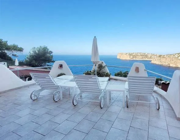 In der malerischen Bucht Cala Llamp, unmittelbar bei Port Andratx gelegen, präsentiert sich diese Wohnung im ursprünglichen mediterranen Stil. Traditionelle Terracotta-Fliesen und freiliegende Holzbalkendecken schaffen eine behagliche Atmosphäre voller zeitloser Eleganz. Port Andratx beeindruckt mit seinem renommierten Yachthafen sowie der belebten Hafenpromenade, wo sich Restaurants, Cafés und Boutiquen aneinanderreihen.