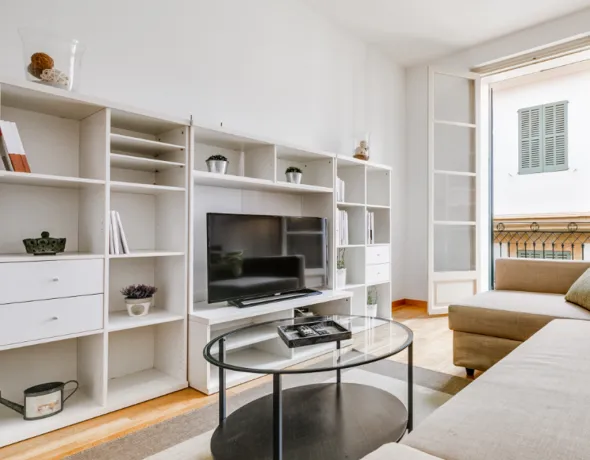 Die Wohnung befindet sich im zweiten Stock eines vollständig restaurierten Palastes aus dem 18. Jahrhundert mit Aufzug und vereint hohe Decken mit komfortablen, geschmackvoll dekorierten Räumen mit dezenten orientalischen Akzenten. Vom gemütlichen Balkon aus können Sie eine malerische, ruhige mallorquinische Straße bewundern. Holzböden, Satellitenfernsehen, eine voll ausgestattete Küche mit Geschirrspüler und ein separater Hauswirtschaftsbereich runden die Ausstattung der Wohnung ab.