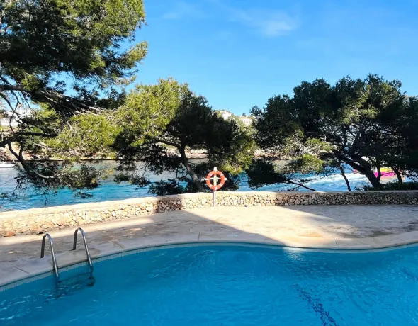 Diese charmante Erdgeschosswohnung in erster Meereslinie befindet sich in Cala d'Or, nur wenige Schritte von Cala Ferrera entfernt, und verfügt über einen offenen Wohn-, Ess- und Küchenbereich, 2 Schlafzimmer und 2 komplette Badezimmer. Sie bietet einen privaten Garten sowie Zugang zu den Gemeinschaftsbereichen mit einem Pool direkt am Meer mit atemberaubendem Blick, gepflegten Gärten und direktem Zugang zum Meer. Die Immobilie wird voll möbliert vermietet und verfügt außerdem über Klimaanlage und Gemeinschaftsparkplätze.