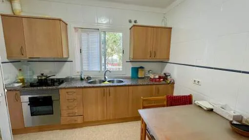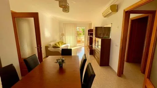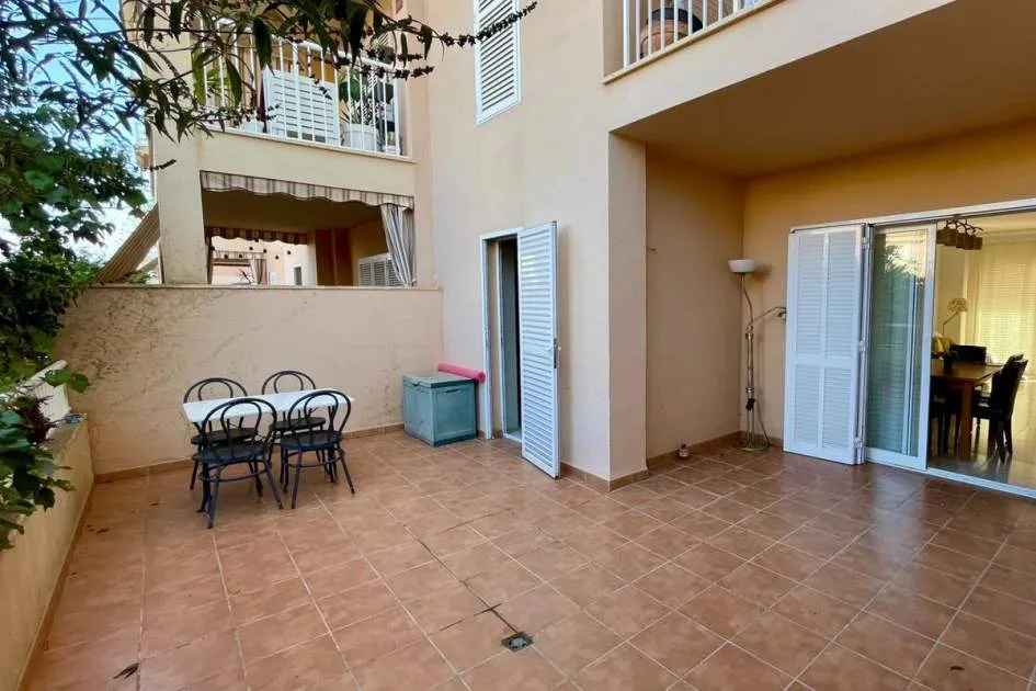 Diese schöne Erdgeschosswohnung in der ruhigen Wohnanlage Ses Palmeres vereint Privatsphäre, Komfort und modernes Wohnen. Die Wohnung verfügt über einen privaten Eingang direkt von der Straße sowie den normalen Gemeinschaftszugang, was Unabhängigkeit und Praktikabilität bietet. Im Inneren finden Sie ein helles und geräumiges Wohnzimmer, eine vollständig möblierte und ausgestattete Küche, zwei komfortable Schlafzimmer und ein Arbeitszimmer, ideal zum Arbeiten von zu Hause oder als Gästezimmer. Die Wohnung verfügt über zwei große Terrassen und einen privaten Garten mit Grillbereich, perfekt zum Entspannen oder für gesellige Stunden im Freien. Die Wohnung gehört zu einer gut gepflegten Anlage mit Gemeinschaftspool.