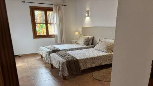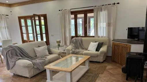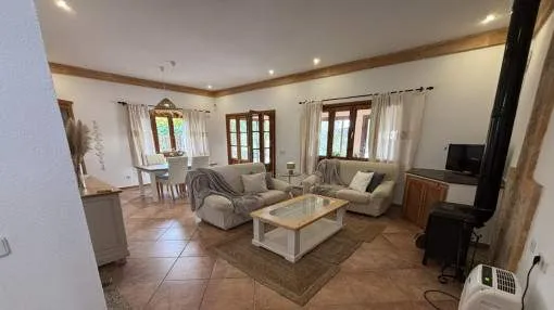 Objektbeschreibung: Diese charmante Finca wird zur Langzeitmiete angeboten und liegt in einer ruhigen Umgebung bei Sant Llorenç des Cardassar. Das Anwesen verfügt über eine Konstruktionsfläche von ca. 140 qm und befindet sich auf einem ca. 735 qm großen Grundstück mit Obstbäumen, die das Grundstück mediterran prägen. Der Innenbereich umfasst ein großzügiges Wohn- und Esszimmer, eine Küche mit Speisekammer sowie einen Eingangsbereich, der sich ideal als Büro oder zusätzlicher Arbeitsbereich eignet. Ein vollständig verglaster Wintergarten erweitert den Wohnraum und sorgt für viel Licht und eine besonders angenehme Wohnatmosphäre. Die gepflegte Einrichtung unterstreicht den einladenden Charakter des Hauses. Ein separater Waschraum ist ebenfalls vorhanden. Die Finca bietet zwei Schlafzimmer, eines davon mit separatem Zugang, sowie zwei Badezimmer, darunter ein Bad direkt am Pool. Der Außenbereich lädt mit einem Pool von ca. 15 qm, mehreren Terrassen rund ums Haus und einem traditionellen Steinofen zum Entspannen unter der mallorquinischen Sonne ein. Terrakottafliesen, ein Kamin und Klimaanlagen schaffen ein komfortables Wohnklima. Besonders hervorzuheben sind die typischen Kieselstein-Mosaike am Boden, die dem Haus eine authentische und zugleich dezente mallorquinische Note verleihen. Sonstiges:Langzeitmiete Lage & Umgebung: Die Immobilie befindet sich in der ruhigen Umgebung von Sant Llorenç des Cardassar. Diese Lage verbindet die Gelassenheit des ländlichen Mallorcas mit einer sehr guten Erreichbarkeit. Die Nähe zu Artà, einem kulturellen und gastronomischen Mittelpunkt im Nordosten der Insel, steigert die Attraktivität zusätzlich und ermöglicht den schnellen Zugang zu seinem Markt, seinen Restaurants, Galerien und dem lebendigen Jahresambiente. Sant Llorenç bietet lokale Dienstleistungen, Geschäfte, Radwege und eine gute Anbindung an die Strände der Ostküste. Eine strategische Lage für Menschen, die Ruhe, Natur und die Nähe zu einem der reizvollsten Orte Mallorcas schätzen.