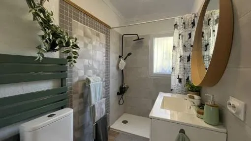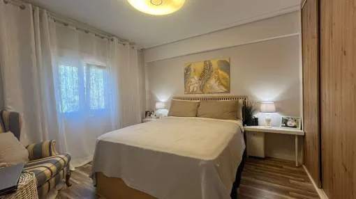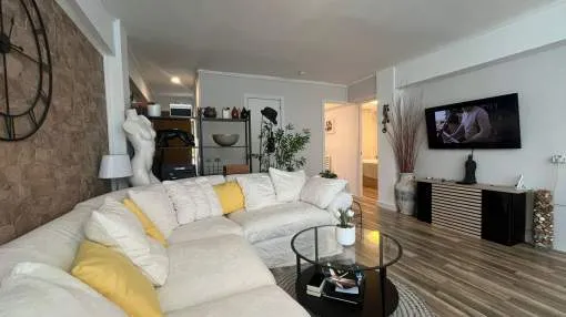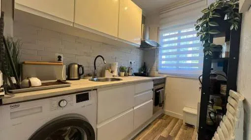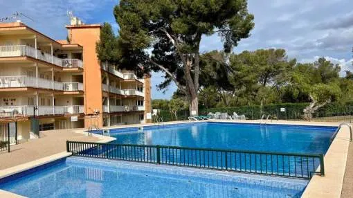 Diese komplett möblierte Wohnung befindet sich in einer ruhigen und begehrten Gegend von Santa Ponsa und bietet 55 m² Wohnfläche, die klug aufgeteilt ist, um ein komfortables und funktionales Wohnumfeld zu schaffen. Sie verfügt über zwei Schlafzimmer, ein Badezimmer und einen einladenden Wohnbereich – perfekt zum Entspannen oder für Zeit mit Familie und Freunden.