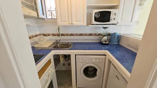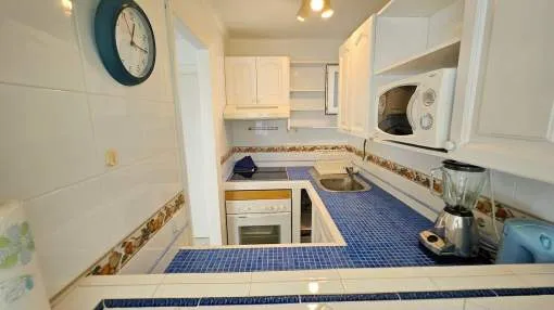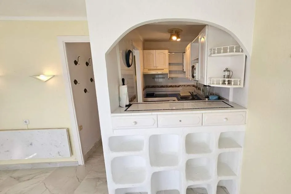 Gemütliches und helles Apartment mit atemberaubendem Meerblick – ideal für Single oder Paar. Wintergarten und Balkon laden zum Entspannen ein und schaffen eine einladende Atmosphäre mit Urlaubsgefühl das ganze Jahr über. Eine praktische Kitchenette, elegante Marmorfußböden sowie neue Klimaanlagen warm/kalt und Heizkörper sorgen für höchsten Komfort. Die ruhige, gepflegte und sympathische Nachbarschaft rundet das exklusive Wohngefühl ab.