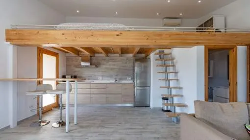 - Küche mit integriertem Wohnbereich