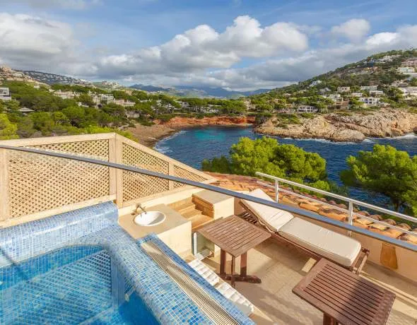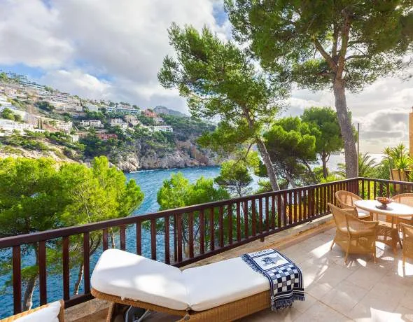 Dieses mediterrane Eckreihenhaus befindet sich in einer exklusiven Residenz in erster Meereslinie, in bevorzugter Apartment- und Villenwohnlage auf der Südseite der Halbinsel La Mola und besticht durch herrliche Aussichten auf die wunderschöne Bucht Cala Marmacén. Umgeben von malerischen Landschaften und dem azurblauen Mittelmeer, bietet diese Lage eine perfekte Mischung aus Ruhe und gehobener Lebensqualität. Die gepflegte Wohnanlage verfügt über einen großzügig angelegtem Garten mit Swimmingpool. Der Hafen von Port Andratx mit seinen Restaurants, Cafés und Geschäften sind fußläufig erreichbar.