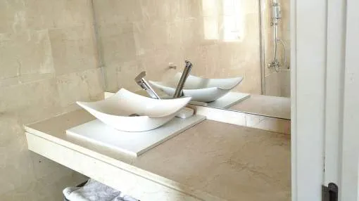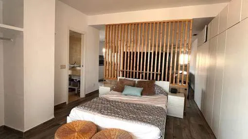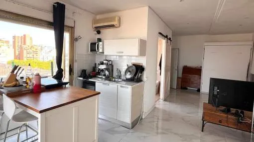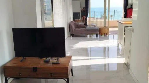 Wunderschöne Maisonette-Wohnung in unschlagbarer Lage, nur wenige Schritte vom Strand entfernt und mit spektakulärem Blick auf das Meer und die Bucht von Palma. Erste Etage: großes Wohnzimmer mit offener Küche, ein Schlafzimmer, ein komplettes Badezimmer und eine große Terrasse, ideal, um die Sonne und die Aussicht zu genießen. Obergeschoss: gemütliches Studio mit eigener Küche, Bad und einer weiteren privaten Terrasse mit unvergleichlichem Panoramablick. Die Immobilie bietet viele Nutzungsmöglichkeiten, sowohl als Hauptwohnsitz, Zweitwohnsitz oder als Investition.