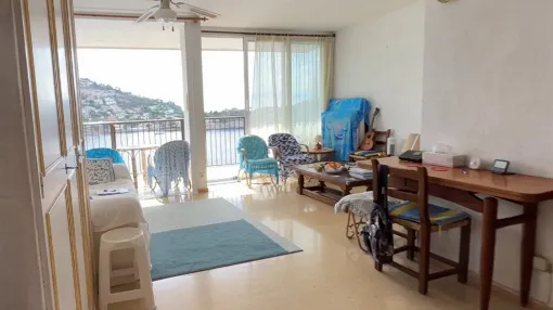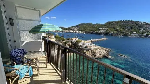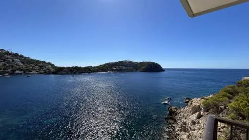 Eckwohnung im obersten Stockwerk, ideal gelegen in erster Meereslinie an der atemberaubenden Cala Fonoll – weithin als der beste Strand in Port Andratx bekannt.