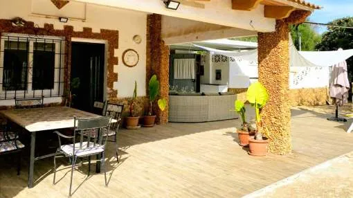 Objektbeschreibung: Eine Villa in der besten Region von Bonaire, die über luxuriöse Häuser, eine wunderschöne Natur und einen atemberaubenden Blick auf das Meer und die Berge verfügt. Durch die Hanglage bietet diese Immobilie einen fantastischen Blick auf ihre Umgebung und vermittelt ein Gefühl von Komfort, Ruhe und Luxus. Erbaut im Jahr 2008 und über die Jahre perfekt gepflegt, bietet es dank seiner minimalistischen Architektur viel Platz, Licht und frische Luft. Die Villa verfügt über 2 Etagen und einen Keller mit insgesamt 450 m² Wohnfläche. Die doppelt verglasten Fenster, die gut verteilte Klimaanlage und die Heizkörper garantieren das ganze Jahr über absoluten Komfort. Das Erdgeschoss besteht aus 3 Doppelschlafzimmern und 3 Badezimmern, 2 davon en Suite. Im ersten Stockwerk befinden sich ein weiteres Doppelschlafzimmer mit angrenzendem Badezimmer, eine moderne, voll ausgestattete Küche und ein großer Wohn- und Essbereich, von dem aus man den Rest von Bonaire und das Meer sehen kann. Der geräumige Keller bietet einen Wasch- und einen Hauswirtschaftsraum, sowie eine Garage für 2 Autos, einen Fitnessraum und 2 Abstellräume. Auch der Außenbereich steht dem geschmackvoll gestalteten Innenbereich in nichts nach. Eine große Holzterrasse mit Grillplatz, ein Swimmingpool mit Jacuzzi bilden die Kulisse für Partys oder einfache Momente der Entspannung. Das insgesamt 1100 m² große Anwesen liegt in einer ruhigen und luxuriösen Nachbarschaft und ist dennoch nur wenige Minuten vom Strand und der lebhaften Stadt Alcudia entfernt. Die Lizenz zur Ferienvermietung macht dieses Haus auch zu einer attraktiven Investitionsmöglichkeit. Rendite aus Ferienvermietung: Mit dem „Porta Holiday Renditerechner“ können Sie zur ersten Orientierung unverbindlich Ihre potenziellen Einnahmen aus einer möglichen Ferienvermietung berechnen. Hinweis: Aufgrund der aktuellen Gesetzeslage kann es in bestimmten Gemeinden zu einer Beschränkung der Vermietbarkeit kommen bzw. werden keine neuen touristischen Lizenzen mehr vergeben. Ihr Porta Mallorquina Immobilienberater berät Sie gerne, ob die von Ihnen gewählte Immobilie davon betroffen ist. Hier geht’s zum Renditerechner. Lage & Umgebung: Die Region um Alcudia ist geografisch gesehen eine Halbinsel. Bonaire, mit den Nebenorten Mal Pas, Manresa und Barcarés auf der Nordseite der Halbinsel gelegen, ist eine sehr grüne und friedliche Urbanisation, welche in drei verschiedenen Bauphasen entstanden ist und von alteingesessenen Villen in erster Meereslinie bis zu einem Neubaugebiet am oberen Teil des Hanges mit wunderschönem Landschafts,- und Meerblick, für jeden Immobilieninteressenten etwas zu bieten hat. Nach Alcudia, mit allerlei Geschäften und kompletter Infrastruktur, sind es von dort aus gerade mal 5 Autominuten.