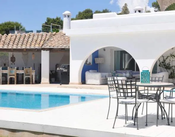 Versteckt in einer ruhigen Straße, nur wenige Schritte von der Küste entfernt, empfängt Sie diese Villa im mediterranen Stil mit einer entspannten, ungezwungenen Atmosphäre, in der Sie sich sofort wie zu Hause fühlen werden.