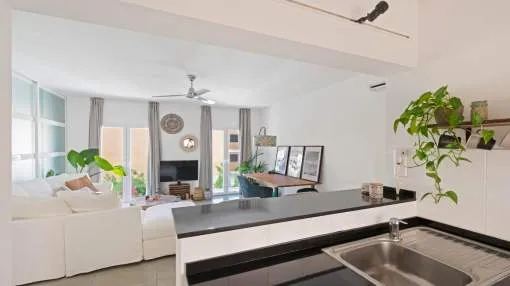 Eine außergewöhnliche und seltene Investitionsmöglichkeit in Puerto de Andratx. Diese besondere Immobilie mit Meerblick bietet dem zukünftigen Eigentümer die Möglichkeit, die Wohnung im zweiten Stock mit dem Penthouse im dritten Stock zu verbinden, um eine geräumige Residenz mit einer Gesamtnutzfläche von ca. 242 m² zu schaffen. Die Wohnung im zweiten Stock kann mit zwei stilvollen Schlafzimmern und zwei Badezimmern gestaltet werden, während das Penthouse im dritten Stock über eine geräumige Master-Suite verfügt. Es besteht die Möglichkeit, auf der Dachterrasse einen privaten Pool zu bauen, da das Fundament bereits gelegt wurde. Dadurch entsteht eine überdurchschnittlich große Residenz am Hafen in einer der begehrtesten Lagen im Südwesten Mallorcas, nur 25 Minuten von Mallorcas Hauptstadt Palma entfernt.