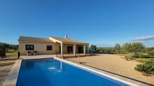 Objektbeschreibung: Luxuriöse Doppelhaushälfte, Eckhaus in beliebter Urbanisation Puig de Ros mit absoluter Privatsphäre. Die elegante Villa verfügt über 236 qm konstruierte Fläche. Im Erdgeschoss befindet sich der Wohn-/Essbereich mit Zugang zu Terrasse, Garten und Pool, die komplett ausgestattete Küche, ein Badezimmer und ein Schlafzimmer, sowie Abstellräume. Über die Treppe gelangt man in das Obergeschoss, welches neben dem Hauptschlafzimmer mit Wintergarten und Badezimmer en Suite, 2 weitere Schlafzimmer mit je Badezimmer en Suite beherbergt. Die Immobilie ist mit hochwertigen Materialien erbaut, doppelt verglaste Fenster, hochwertige Marmorböden, Kamin, Klimaanlage, Stellplatz, Bewässerungsanlage und vieles mehr. Rendite aus Ferienvermietung: Mit dem „Porta Holiday Renditerechner“ können Sie zur ersten Orientierung unverbindlich Ihre potenziellen Einnahmen aus einer möglichen Ferienvermietung berechnen. Hinweis: Aufgrund der aktuellen Gesetzeslage kann es in bestimmten Gemeinden zu einer Beschränkung der Vermietbarkeit kommen bzw. werden keine neuen touristischen Lizenzen mehr vergeben. Ihr Porta Mallorquina Immobilienberater berät Sie gerne, ob die von Ihnen gewählte Immobilie davon betroffen ist. Hier geht’s zum Renditerechner. Lage & Umgebung: Puig de Ros, das zur Gemeinde von Llucmajor gehört, liegt südöstlich von Palma und bildet einen Gegensatz zur lebhaften Playa de Palma - Ruhe und Erholung sind hier garantiert. Es besteht hauptsächlich aus Apartmentanlagen und Villen. Puig de Ros ist der ideale Ausgangspunkt für flache Radtouren entlang der Steilküste und in das Landesinnere. Der Golfplatz "Maioris" liegt in unmittelbarer Nähe ebenso ein großer Supermarkt. Bis zum Flughafen sind es ca. 15, bis Palma 25 km.