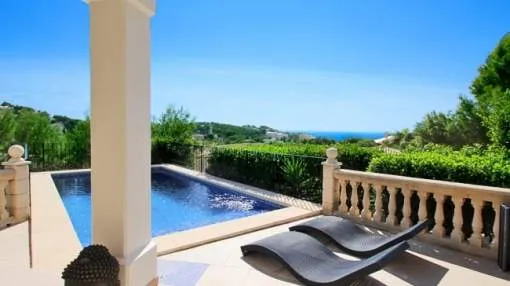 Im Außenbereich genießen Sie sonnige Tage am privaten Swimmingpool, umgeben von üppigem Grün und eleganter Gartenlandschaft. Ob beim Entspannen mit einem Getränk oder beim Unterhalten von Gästen – diese Villa bietet den mediterranen Lebensstil, den Sie sich wünschen.
