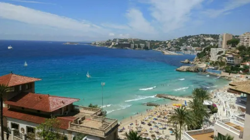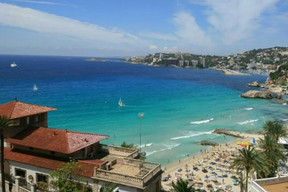 Nur 50 Meter vom Strand Cala Major entfernt, bietet diese elegante Erdgeschosswohnung direkten Zugang zum Strand und verbindet Komfort, Helligkeit und eine unschlagbare Lage in einer der begehrtesten Gegenden Palmas.