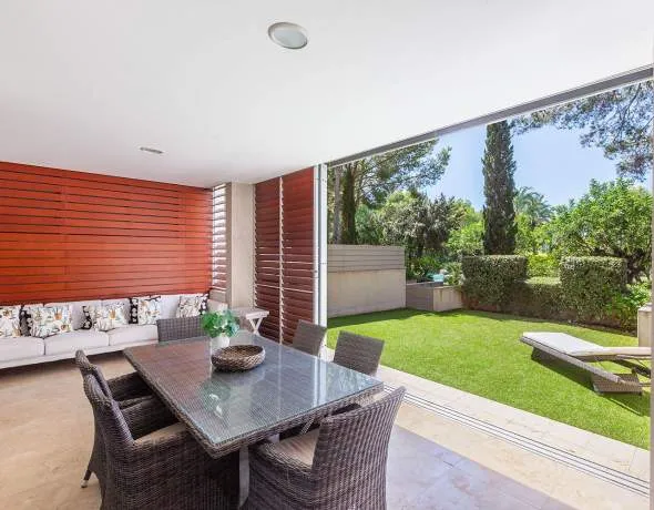 Dieses großzügige und stilvolle Gartenapartment befindet sich in einer der exklusivsten Residenzen im Südwesten Mallorcas – nur wenige Schritte vom renommierten Golfplatz von Bendinat. Sie besteht aus sechs Gebäuden mit insgesamt 80 Einheiten und verfügt über einen 24-Stunden-Sicherheitsdienst. Eingebettet in einen wunderschönen, mediterranen Parkgarten mit liebevoll angelegten Terrassen, zwei Gemeinschaftspools und einem separaten Kinderbecken, ist diese Anlage eine grüne Oase der Ruhe und des gehobenen Lebensstils.