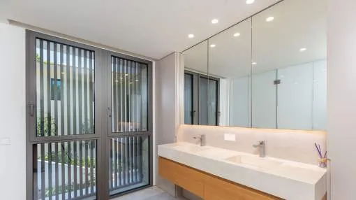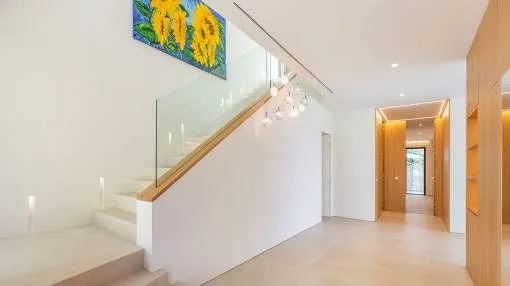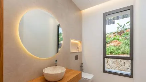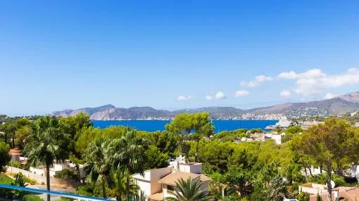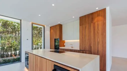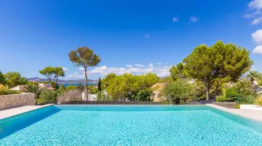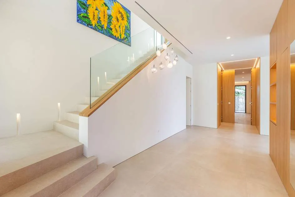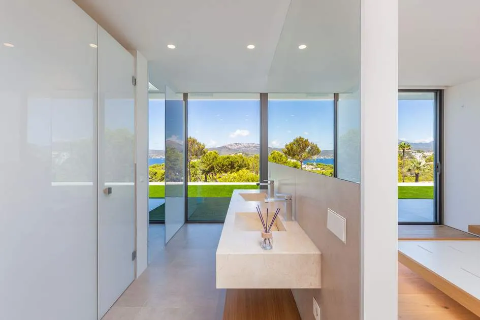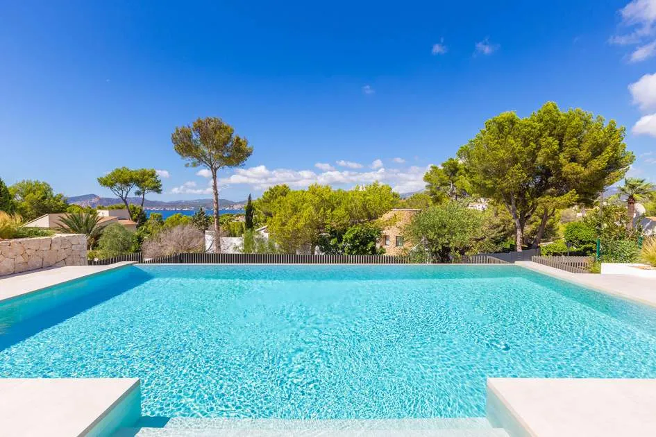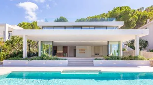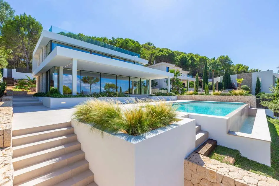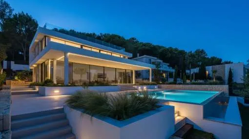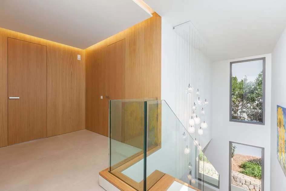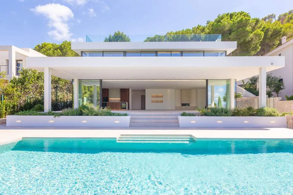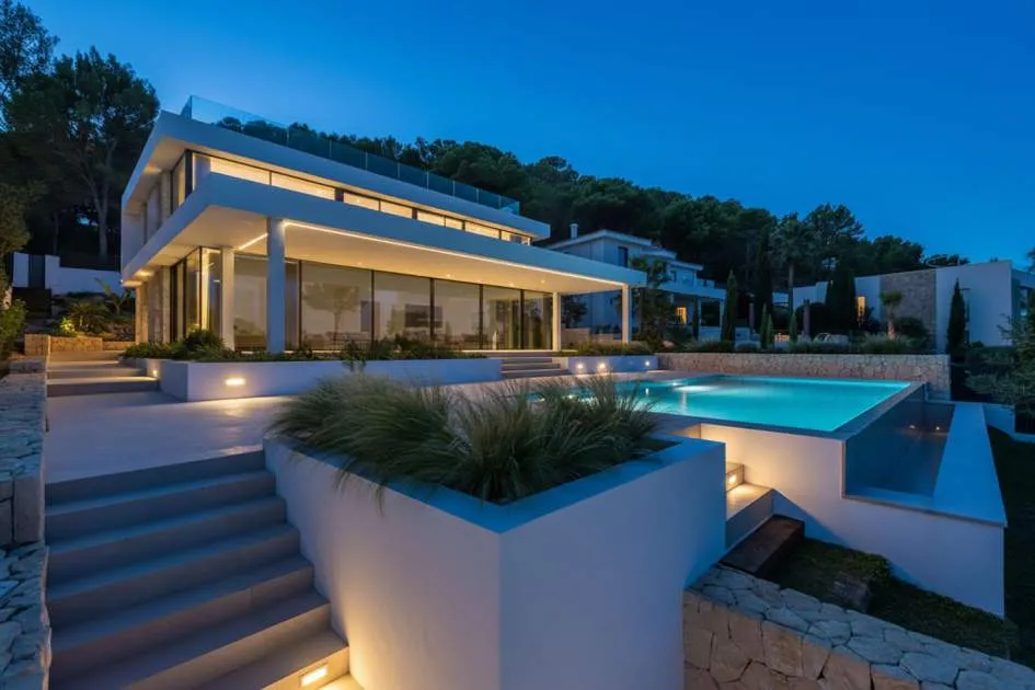 In einer der exklusivsten Villenurbanisationen von Santa Ponsa gelegen, präsentiert sich diese stilvolle Neubauvilla als moderner Rückzugsort mit hoher Privatsphäre. Die ruhige Wohngegend grenzt direkt an ein weitläufiges Naturschutzgebiet, das über eine genehmigte Gartentür zugänglich ist. Gleichzeitig überzeugt die Lage durch ihre Nähe zum Zentrum: Drei renommierte Golfplätze sowie mehrere Yachthäfen befinden sich in unmittelbarer Umgebung. Der große Sandstrand von Santa Ponsa, idyllische Badebuchten, Sport- und Freizeitmöglichkeiten sowie zahlreiche Einkaufs- und Ausgehmöglichkeiten sind in wenigen Minuten mit dem Auto erreichbar.