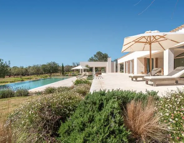 Beschreibung Diese moderne Luxusfinca befindet sich eingebettet in die mediterrane Landschaft nahe Campos und bietet absolute Privatsphäre sowie einen traumhaften Weitblick über die Natur bis hin nach Cabrera.