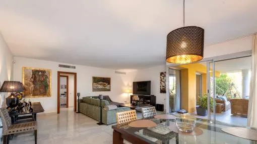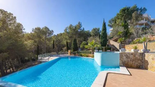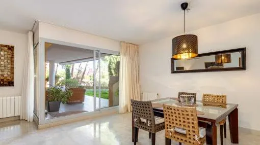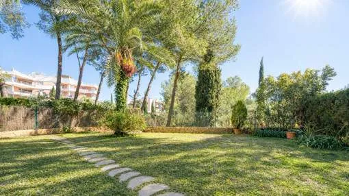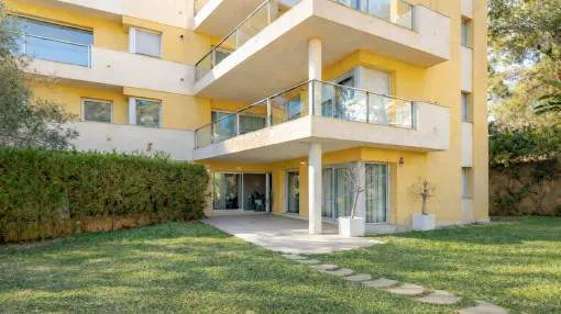 Exklusive Erdgeschosswohnung mit eigenem Garten, zwei Parkplätzen und Gemeinschaftspool in Sol de Mallorca