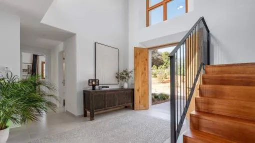 Objektbeschreibung: Auf einem ca. 19.372qm großen Grundstück befindet sich diese luxuriöse Neubaufinca in beliebter Lage von Cas Concos, eingebettet in der mediterranen Landschaft. Das durchdachte Zusammenspiel aus hochwertigsten Materialien, mediterranen Elementen und zeitgemäßem Design schafft ein Wohnumfeld von außergewöhnlichem Komfort und harmonischer Eleganz. Im Erdgeschoss werden Sie von einem einladenden Eingangsbereich mit hoher Decke empfangen. Dieser führt Sie in den gemütlichen Wohnbereich mit Kamin. Naturtöne verleihen ein edles Ambiente. Angrenzend befindet sich der Essbereich mit offener, komplett ausgestatteter Küche. Die großen Glastüren durchfluten den Raum mit viel Licht und ermöglichen direkten Zugang auf die überdachte Terrasse und in den Garten. Desweiteren befinden sich 2 Schlafzimmer und 2 Badezimmer, eines davon en Suite, im Erdgeschoss. Eine Treppe führt Sie in das Obergeschoss der Finca. Hier befinden sich eine großzügige Master-Suite, sowie 2 weitere Schlafzimmer und 2 Badezimmer, eines davon en Suite. Die Master-Suite verfügt über einen Ankleidebereich, ein Badezimmer en Suite mit freistehender Badewanne sowie Zugang auf die eine private Terrasse mit traumhaftem Panoramablick auf die Berge und die umliegende, mediterrane Landschaft. Der mediterrane Garten wurde mit viel Liebe im Detail angelegt. Der Pool verfügt über eine Gegenstromanlage und eine direkt angrenzende Sonnenterrasse. Dank der Klimaanlage und Fußbodenheizung im gesamten Haus ist die Finca ganzjährig nutzbar. Des Weiteren verfügt die Finca über eine Garage, Stadtstrom, Solaranlage, Stadtwasser und einen eigenen Brunnen. Ein exklusives Landhaus, das höchsten Komfort, mediterranes Lebensgefühl und stilvolle Architektur vereint. Rendite aus Ferienvermietung: Mit dem „Porta Holiday Renditerechner“ können Sie zur ersten Orientierung unverbindlich Ihre potenziellen Einnahmen aus einer möglichen Ferienvermietung berechnen. Hinweis: Aufgrund der aktuellen Gesetzeslage kann es in bestimmten Gemeinden zu einer Beschränkung der Vermietbarkeit kommen bzw. werden keine neuen touristischen Lizenzen mehr vergeben. Ihr Porta Mallorquina Immobilienberater berät Sie gerne, ob die von Ihnen gewählte Immobilie davon betroffen ist. Hier geht’s zum Renditerechner. Lage & Umgebung: Das ursprüngliche Dorf Cas Concos bildet mit S´Alquería Blanca und Santanyí das als Hamburger Hügel bekannte Dreieck, eine landschaftlich reizvolle Gegend, in der sich zunächst ruhesuchende Künstler und Mäzene in den sanften Hügel ihren Traum vom Leben unter südlicher Sonne erfüllt haben. Cas Concos ist bekannt für seine Handwerkskunst und Galerien, auch für den täglichen Bedarf ist mit einigen Geschäften und Restaurants gesorgt. Das hübsche Marktstädtchen Santanyí mit Restaurants und Boutiquen sowie die zahlreichen, kleinen Badebuchten im Südosten der Insel erreichen Sie in ca. 15 Fahrminuten.