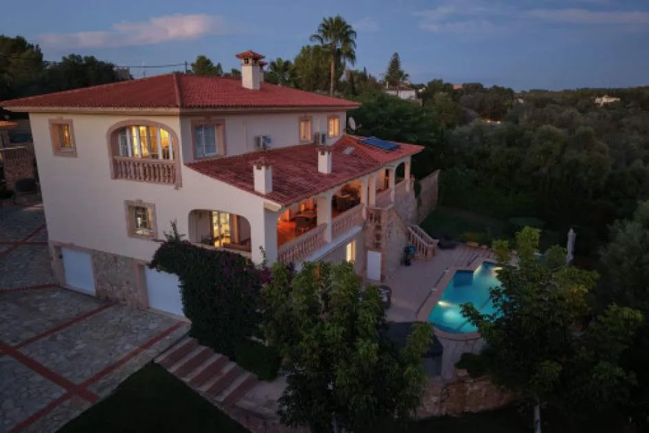 Objektbeschreibung: Diese außergewöhnliche Villa vereint mediterranes Flair mit modernem Komfort und hochwertiger Ausstattung. In einer ruhigen, exklusiven Lage gelegen, bietet sie ein großzügiges Zuhause, das Eleganz und Wohlfühlatmosphäre harmonisch verbindet. Das Erdgeschoss beeindruckt mit einem lichtdurchfluteten Wohnzimmer samt Kamin, einem separaten Esszimmer und einem weiteren Kaminzimmer als Rückzugsort. Die exklusive Nolte-Küche mit angrenzender Waschküche und Abstellraum lässt keine Wünsche offen. Eine komfortable Gästesuite mit eigenem Badezimmer sorgt für Privatsphäre. Alle Räume verfügen über direkten Zugang zur überdachten Terrasse, wodurch Innen- und Außenbereich harmonisch ineinanderfließen. Im Obergeschoss erwartet Sie das großzügige Master-Schlafzimmer mit en Suite-Badezimmer, Wintergarten und Ankleide – ein luxuriöser Rückzugsort für höchste Ansprüche. Zwei weitere Schlafzimmer teilen sich ein modernes Badezimmer. Der nach Süden ausgerichtete Außenbereich ist ein Highlight: 126 qm Freiterrasse, eine 60 qm überdachte Terrasse, ein 35 qm Pool mit Solarheizung sowie ein Whirlpool für fünf Personen schaffen ideale Bedingungen für Entspannung und Freizeit. Ergänzt wird das Angebot durch ein Fitnesscenter und eine große Plattform mit Feuerstelle inmitten der gepflegten Parkanlage. Auch technisch überzeugt die Villa in allen Bereichen. Marmorböden, Glasfaser-Internet und SAT-TV bieten Komfort, während eine moderne Alarmanlage, Doppelverglasung und ein elektrisches Tor Sicherheit und Energieeffizienz garantieren. Photovoltaik, Solarthermie, Zisterne, eigener Brunnen sowie städtische Anschlüsse sichern eine nachhaltige Versorgung. Für ein angenehmes Raumklima sorgen zentrale Ölheizung, Klimaanlage, Infrarotheizungen und zwei Kamine. Ein Carport für 2 Fahrzeuge sowie eine Garage für 3 Autos runden das Gesamtpaket dieser traumhaften Immobilie ab. Rendite aus Ferienvermietung: Mit dem „Porta Holiday Renditerechner“ können Sie zur ersten Orientierung unverbindlich Ihre potenziellen Einnahmen aus einer möglichen Ferienvermietung berechnen. Hinweis: Aufgrund der aktuellen Gesetzeslage kann es in bestimmten Gemeinden zu einer Beschränkung der Vermietbarkeit kommen bzw. werden keine neuen touristischen Lizenzen mehr vergeben. Ihr Porta Mallorquina Immobilienberater berät Sie gerne, ob die von Ihnen gewählte Immobilie davon betroffen ist. Hier geht’s zum Renditerechner. Lage & Umgebung: Puig de Ros, das zur Gemeinde von Llucmajor gehört, liegt südöstlich von Palma und bildet einen Gegensatz zur lebhaften Playa de Palma - Ruhe und Erholung sind hier garantiert. Es besteht hauptsächlich aus Apartmentanlagen und Villen. Puig de Ros ist der ideale Ausgangspunkt für flache Radtouren entlang der Steilküste und in das Landesinnere. Der Golfplatz "Maioris" liegt in unmittelbarer Nähe ebenso ein großer Supermarkt. Bis zum Flughafen sind es ca. 15, bis Palma 25 km.