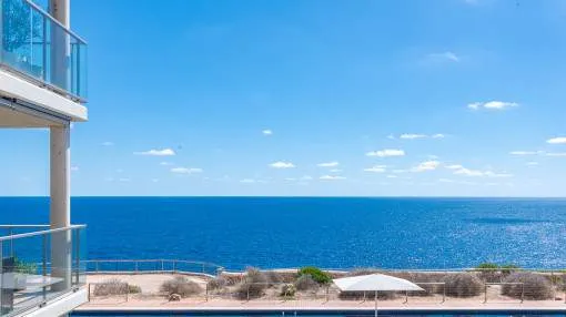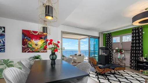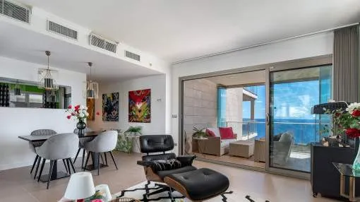 Die Wohnung begeistert mit einem unvergleichlichen Blick auf das offene Meer sowie einer hochwertigen Ausstattung. Herzstück der Immobilie ist die großzügige Terrasse, die wie ein erweitertes Wohnzimmer im Freien wirkt.