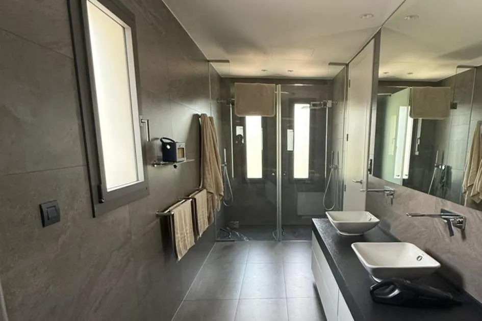 Die Villa ist ausgestattet mit Klimaanlage (kalt/warm), Fußbodenheizung, großen PVC-Fenstern mit Isolierverglasung, hochwertigen Keramikböden, maßgefertigten Einbauschränken und einem Hauswirtschaftsraum. Außerdem gibt es eine Tiefgarage für ein Fahrzeug, Abstellraum und Technikräume.