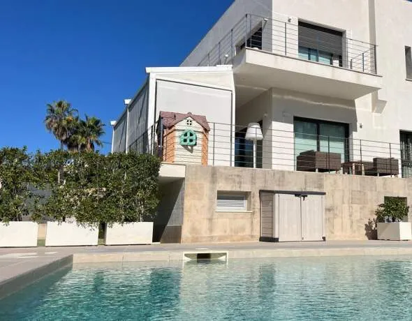 Die Villa ist ausgestattet mit Klimaanlage (kalt/warm), Fußbodenheizung, großen PVC-Fenstern mit Isolierverglasung, hochwertigen Keramikböden, maßgefertigten Einbauschränken und einem Hauswirtschaftsraum. Außerdem gibt es eine Tiefgarage für ein Fahrzeug, Abstellraum und Technikräume.