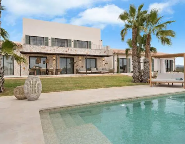 Diese wunderschöne Neubaufinca vereint modernen Luxus, mediterranes Flair und Ruhe auf einzigartige Weise. In begehrter Lage nahe Ses Salines eröffnet sich Ihnen ein herrlicher Weitblick auf das Dorf sowie die mediterrane Landschaft. Helle Farbnuancen und eine geschmackvoll abgestimmte Einrichtung schaffen eine einladende Atmosphäre.