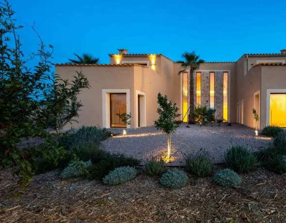 Exklusive, neu gebaute Villa in Sencelles, in der ruhigen ländlichen Gegend von Els Jornets gelegen, mit Panoramablick auf die Serra de Tramuntana. Erbaut unter einer Lizenz vor den aktuellen Vorschriften, hat es eine großzügige bebaute Fläche von 492 m² und einen spektakulären Swimmingpool von 83 m², die alle auf einem großen flachen und fruchtbaren Grundstück.