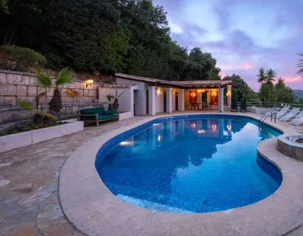 Dieses beeindruckende mallorquinische Anwesen, hoch in den Bergen gelegen, bietet einen einzigartigen Rückzugsort voller Privatsphäre und Ruhe, umgeben von Wald und Natur, mit unvergleichlichem Blick auf Palma und die Umgebung. Es vereint den traditionellen Charme mallorquinischer Häuser perfekt mit modernem Komfort und schafft so ein Zuhause voller Charakter und Behaglichkeit.