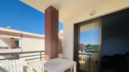 Wir präsentieren Ihnen diese prächtige Immobilie, die sich in einer der gefragtesten Gegenden von Santa Ponça befindet, nur wenige Minuten vom Strand entfernt und von allen Arten von Dienstleistungen umgeben, was Komfort und eine ausgezeichnete Lebensqualität garantiert. Das Apartment verfügt über ein separates Schlafzimmer und ein vollständiges Badezimmer sowie ein geräumiges und helles Wohn-Esszimmer. Die Küche ist unabhängig und vollständig ausgestattet, außerdem gibt es einen separaten Hauswirtschaftsraum. Vom Balkon aus genießen Sie einen spektakulären Meerblick, während die Anlage einen Gemeinschaftspool für die Bewohner bietet.
