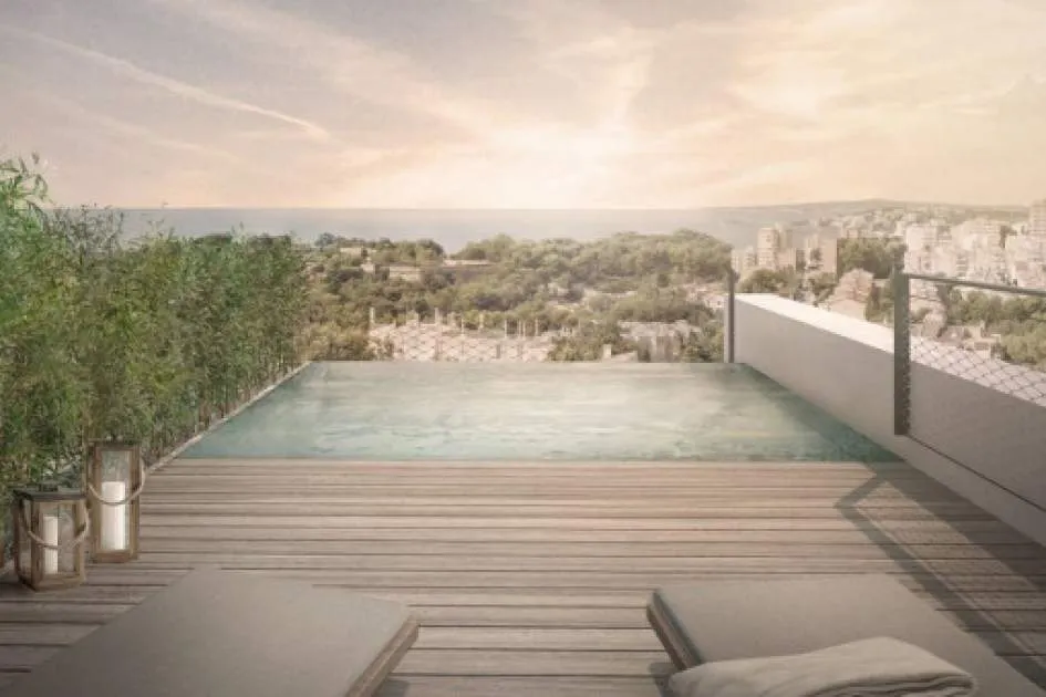 Exklusives, hochwertig erbautes 2 SZ Luxus Duplex-Penthouse mit Meerblick und Pool in Bonanova