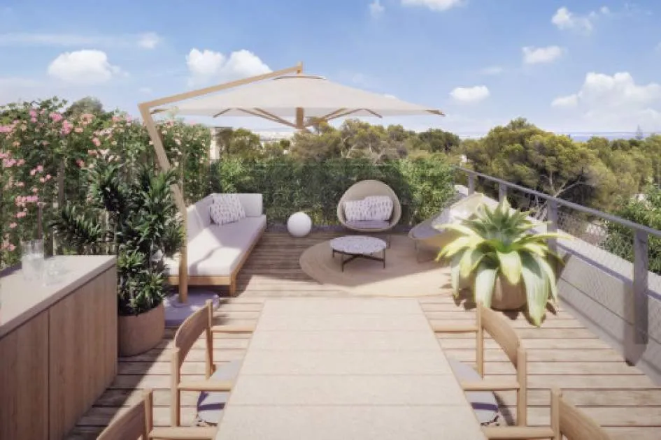 Objektbeschreibung: 'Parallel East& West' präsentiert sich mit 2 innovativen Gebäuden mit je 6 Luxusapartments, die wahlweise über einen privaten Swimmingpool, einen eigenen Garten oder eine geschützte Dachterrasse mit Panoramablick über die Bucht Palmas, Cala Major und Illetas verfügen. Architektonische Ästhetik, zeitgemäße, respektvolle Nachhaltigkeit, höchste Energieeffizienz sowie eine harmonische Einbettung in die natürliche Umgebung, wurden auf herausragendem Niveau bei diesem besonderen Wohnprojekt ganzheitlich vereint. Das Gebäudeensemble, befindet sich zwischen den Polaritäten "Panorama Palma -Bucht" sowie "Schloss Bellver“. Dieses Duplex- Penthouse auf 2 Ebenen, bietet Ihnen auf einer Gesamtfläche von 136 qm 2 Schlafzimmer mit Badezimmer en Suite, eine Gästetoilette, einen Hauswirtschaftsraum, einen Ankleidebereich, sowie einen großen Küchen- und Wohnbereich mit Terrasse. Die großzügige Dachterrasse mit Meer- und Panoramablick verfügt über eine externe Sommerküche mit Sitzbereich sowie einen Bereich zum Sonnen mit Swimmingpool. Außerdem gibt es einen komplett ausgestatteten klimatisierten Fitnessbereich. Zwei Garagenplätze mit Abstellraum sind inklusive. Ausrichtung: O/W. Weitere Einheiten dieses Projekts: Objekt-Nr.KonstruktionsflächeSchlafzimmerEtagePreis116632136 m²22€ 1.825.000,- 116632A106 m²22€ 1.225.000,- 116632C120 m²30€ 760.000,- 116632E116 m²30€ 985.000,- 116632F101 m²20€ 785.000,- 116632G227 m²52€ 2.775.000,- Lage & Umgebung: Vom schönen Ort Bonanova hat man aufgrund seiner erhöhten Lage, angrenzend an den wunderschönen Parc de Bellver mit dem berühmten Schloss Bellver, einen traumhaften Blick auf die gesamte Bucht Palmas, das offene Meer als auch in die Berge. Besonders an dem Villenviertel ist, dass es zwar sehr zentral liegt und somit dank der fantastischen Anbindung an das Zentrum von Palma in nur wenigen Minuten mit dem Auto oder Bus zu erreichen ist, es aber dennoch zu den ruhigsten und sichersten Stadtvierteln von Palma zählt. Folglich besteht die Möglichkeit in einer ruhigen Gegend zu wohnen, aber alle Annehmlichkeiten der Stadt, wie beispielsweise Restaurants, Cafés, Bars und Geschäfte, stets genießen zu können. Darüber hinaus bietet der Stadtteil selbst exquisite Gastronomie, Supermärkte, Sportstätten und Arztpraxen, in nächster Nähe. Das Shopping-Center Porto Pi ist beispielsweise nur wenige Autominuten entfernt und bietet eine riesengroße Auswahl an Geschäften und Restaurants. Auch Strände, wie beispielsweise der schöne Strand von Cala Major sind ebenfalls nur wenige Minuten mit dem Auto von Bonanova entfernt. Des Weiteren lässt es sich hier mit Kindern sehr gut leben, denn das „Queen´s College“ in Bonanova genießt international einen hervorragenden Ruf.