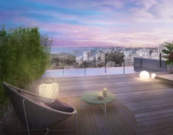 'Parallel East& West' präsentiert sich mit 2 innovativen Gebäuden mit je 6 Luxusapartments, die wahlweise über einen privaten Swimmingpool, einen eigenen Garten oder eine geschützte Dachterrasse mit Panoramablick über die Bucht Palmas, Cala Major und Illetas verfügen.