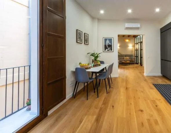 Im Herzen der historischen Altstadt von Palma, nur wenige Schritte von der emblematischen Plaza Cort entfernt, befindet sich dieses elegante, neu fertiggestellte Duplex, das den Charme der Altstadt perfekt mit modernem Wohnkomfort verbindet. Die Immobilie erstreckt sich über zwei Etagen und verfügt über zwei großzügige Doppelzimmer sowie einen hellen Wohnbereich mit offener Designküche, der ein modernes und funktionales Wohngefühl schafft. Hochwertige Materialien und erstklassige Ausstattungen unterstreichen den exklusiven Charakter der Wohnung.