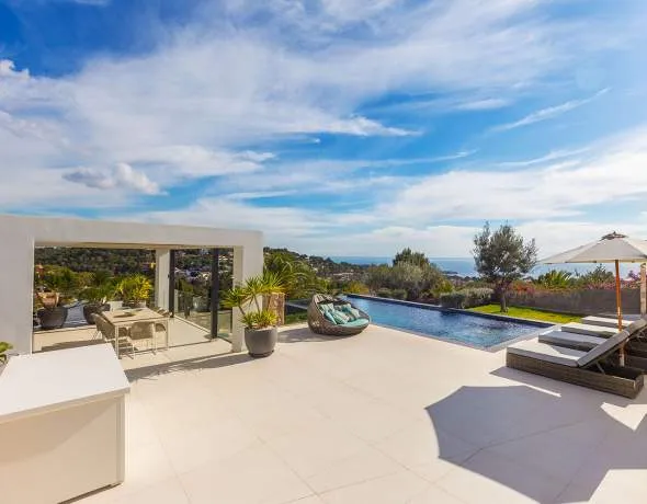 Diese außergewöhnliche Villa vereint beste Lage, eine hochwertige Bauausführung und eine erstklassige Ausstattung. Sie befindet sich auf einem 1.173 m² großen Hanggrundstück in der exklusiven und gesicherten Villenurbanisation Costa d’en Blanes. Mit einer bebauten Fläche von 517 m² erstreckt sie sich über drei Ebenen und überzeugt mit großzügigen, nach Südosten ausgerichteten Räumlichkeiten. Sie zeichnet sich zudem durch eine transparente und innovative Architektur mit einem eleganten Innendesign und modernster Haustechnik aus. Die zum Meer ausgerichteten Glasfronten heben die Grenze zwischen Innen und Außen auf und sorgen für ein naturverbundenes Wohnerlebnis mit sensationeller Aussicht.
