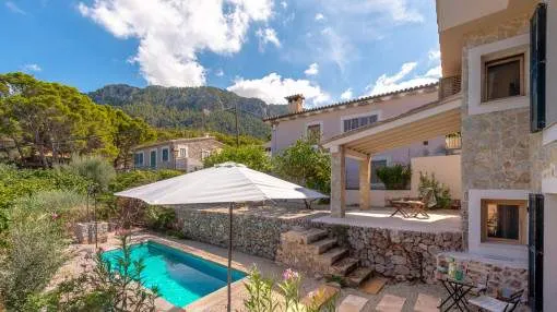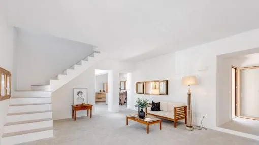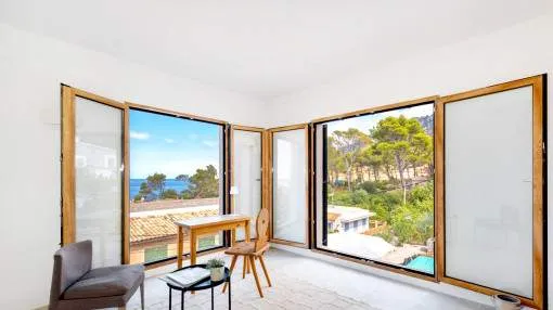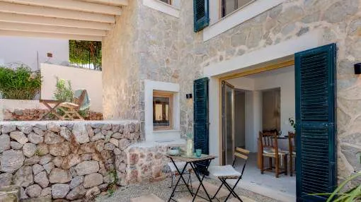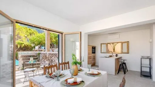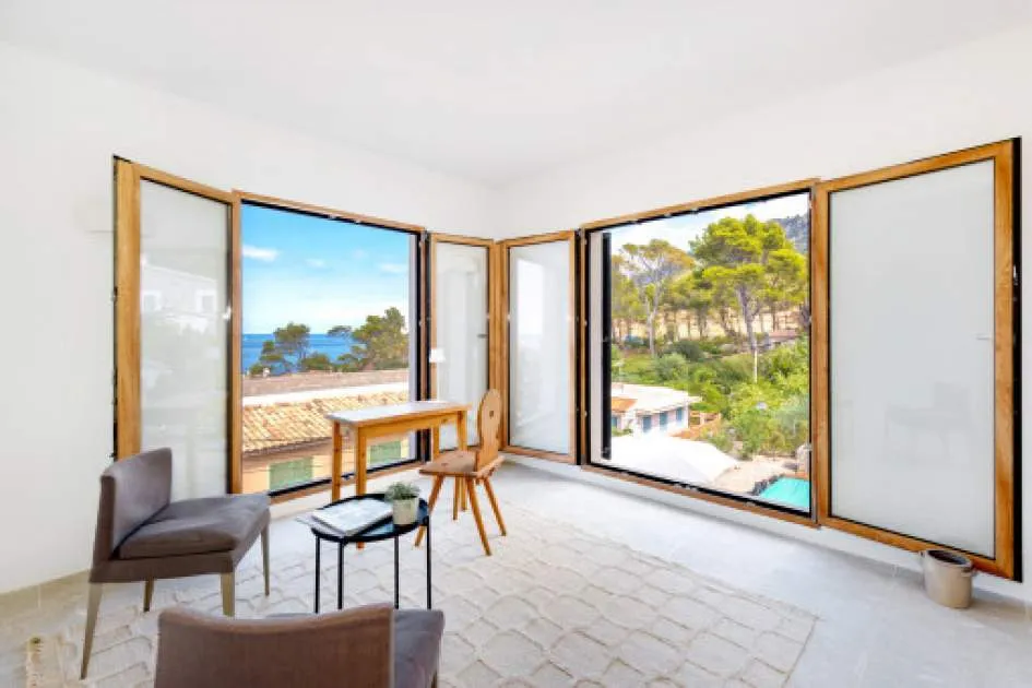 Objektbeschreibung: Hier eine exklusive Villa in der malerischen Küstenregion zwischen Banyalbufar und Valldemossa. Nur wenige Meter vom Strand entfernt. Mit der atemberaubenden Kulisse der Mittelmeerküste bietet dieses Anwesen Privatsphäre und Exklusivität in einer der begehrtesten Gegenden von Mallorca. Entdecken Sie Ihr neues Zuhause in diesem Hafen von Mallorca, eine elegante und helle Villa, eine Oase der Ruhe und des Charmes. Diese Immobilie wurde 1970 erbaut und vor kurzem (2025) im perfekten minimalistischen Stil renoviert, wobei der mallorquinische Charakter erhalten blieb. Die großzügigen Wohnräume verteilen sich auf 2 Etagen. Im Erdgeschoss befinden sich 2 Bereiche: ein komplett offener Bereich mit dem geräumigen Wohnzimmer, dem Esszimmer und der Küche und ein weiterer Bereich, der aus einer Eingangshalle und einem Schlafzimmer mit Badezimmer besteht. Ganz im mediterranen Stil kann man vom Erdgeschoss direkt auf die verschiedenen Terrassen und Innenhöfe gehen. Vom Wohnzimmer aus führt eine Treppe in den ersten Stock, wo sich 2 weitere Schlafzimmer mit ihren stilvollen Badezimmern befinden, en suite und mit schöner Aussicht. Das Hauptschlafzimmer führt auf die Terrasse mit atemberaubendem Blick auf das Meer und die Berge. Insgesamt gibt es drei geräumige, lichtdurchflutete Schlafzimmer, jedes mit eigenem Designerbadezimmer, das bis ins kleinste Detail den letzten Schliff gibt. Für Gemütlichkeit in dem Wohnzimmer sorgt ein stilvoll restaurierten Kamin, der das Wohnzimmer in einen behaglichen Rückzugsort verwandelt. Das Haus ist mit einer hocheffizienten Fujitsu-Klimaanlage (warm und kalt) ausgestattet. Im dynamischen Außenbereich, umgeben von Terrassen, gibt es auch einen großen Pool und einen pflegeleichten mediterranen Garten. Dieses schöne Anwesen ist ideal für alle, die einen luxuriösen Lebensstil suchen und von zu Hause aus die Schönheit der reinen Natur genießen möchten, umgeben von einigen der schönsten Wanderwege der Insel, im Naturpark der Sierra Tramontana. Rendite aus Ferienvermietung: Mit dem „Porta Holiday Renditerechner“ können Sie zur ersten Orientierung unverbindlich Ihre potenziellen Einnahmen aus einer möglichen Ferienvermietung berechnen. Hinweis: Aufgrund der aktuellen Gesetzeslage kann es in bestimmten Gemeinden zu einer Beschränkung der Vermietbarkeit kommen bzw. werden keine neuen touristischen Lizenzen mehr vergeben. Ihr Porta Mallorquina Immobilienberater berät Sie gerne, ob die von Ihnen gewählte Immobilie davon betroffen ist. Hier geht’s zum Renditerechner. Lage & Umgebung: Der alte durch Landwirtschaft geprägte und von Terrassen bestimmte Ort Banyalbufar befindet sich an der wildromantischen Nordwestküste Mallorcas. Hier findet man das ursprüngliche Mallorca und einen sanften, gehobenen Tourismus. Viele Wanderwege durch die umliegenden Kiefernwälder und eine fantastische Sicht auf das Meer, bedingt durch die geografischen Verhältnisse der Steilküste dieser Zone sowie eine kleine Strandbucht ziehen den naturverbundenen Mallorcakenner an.