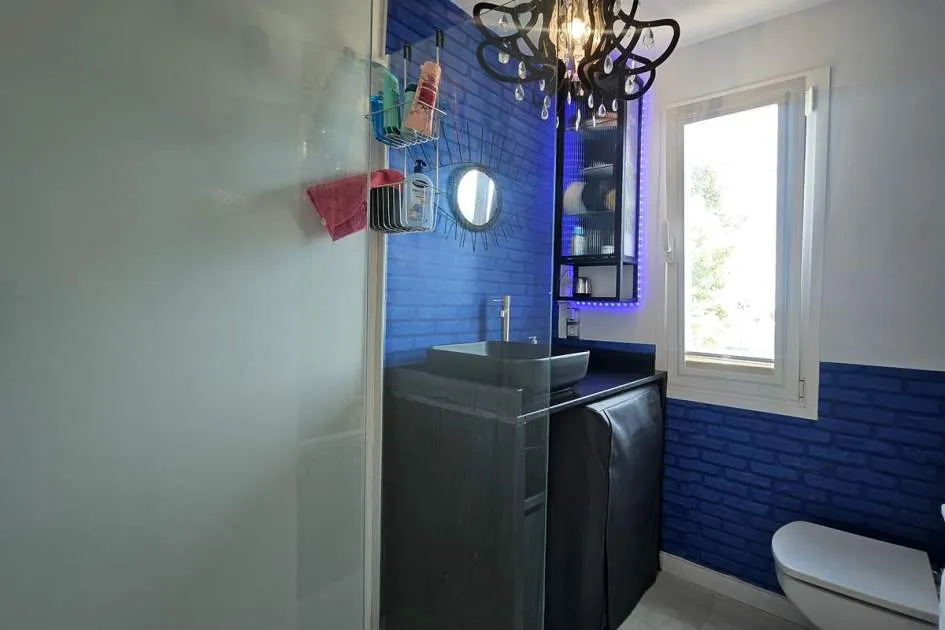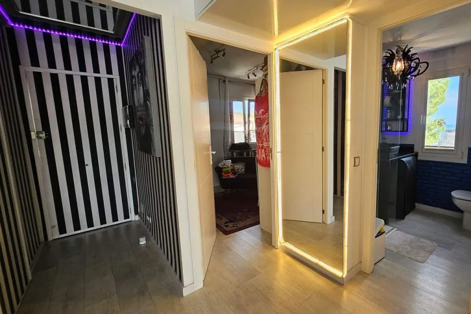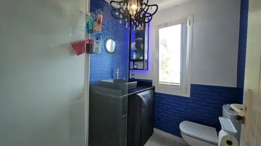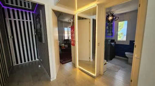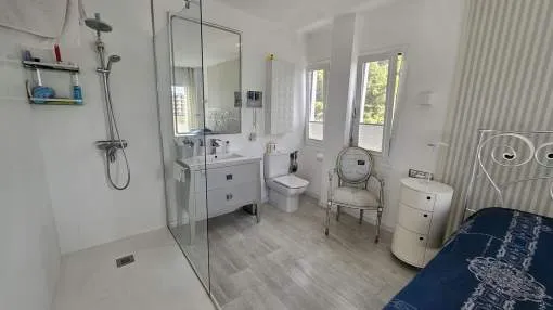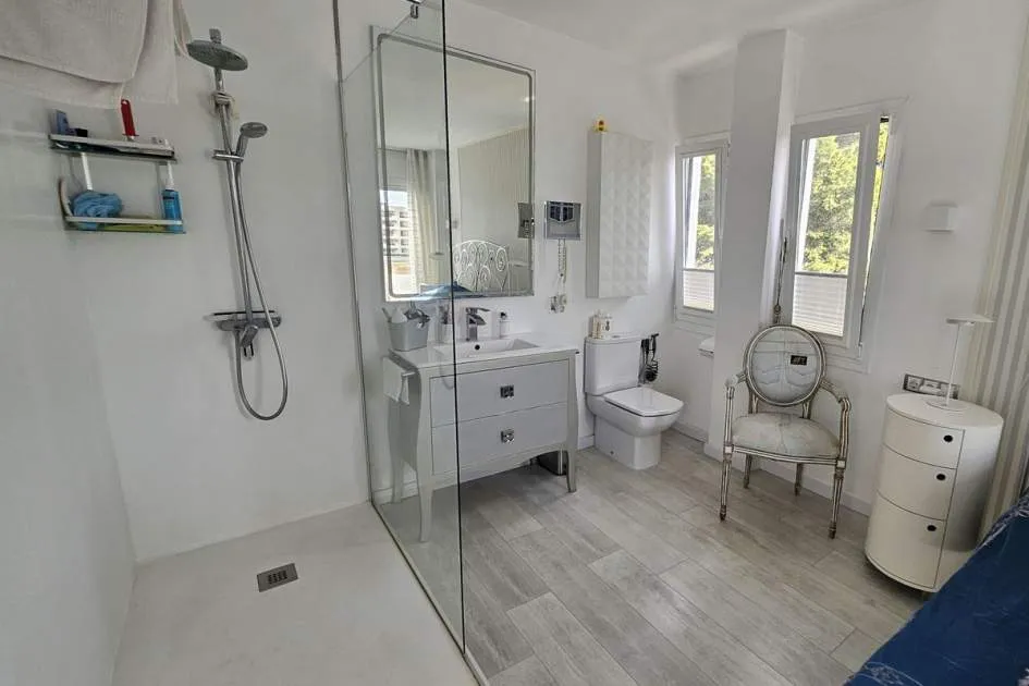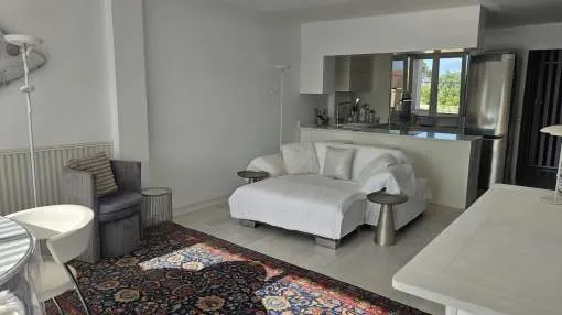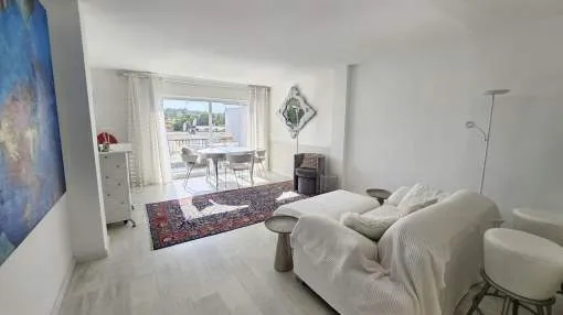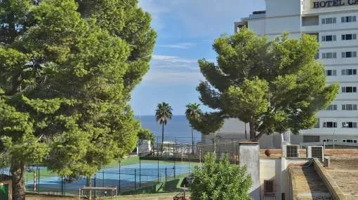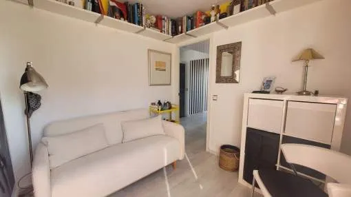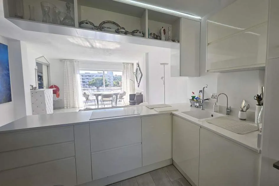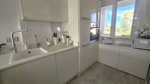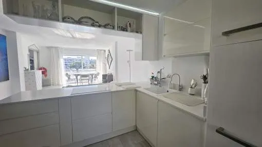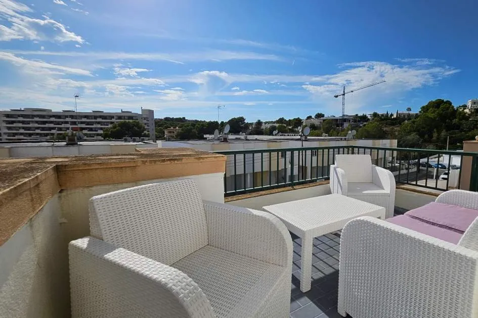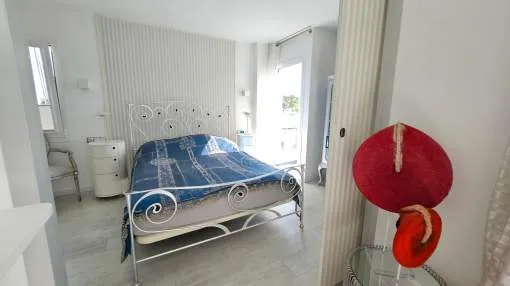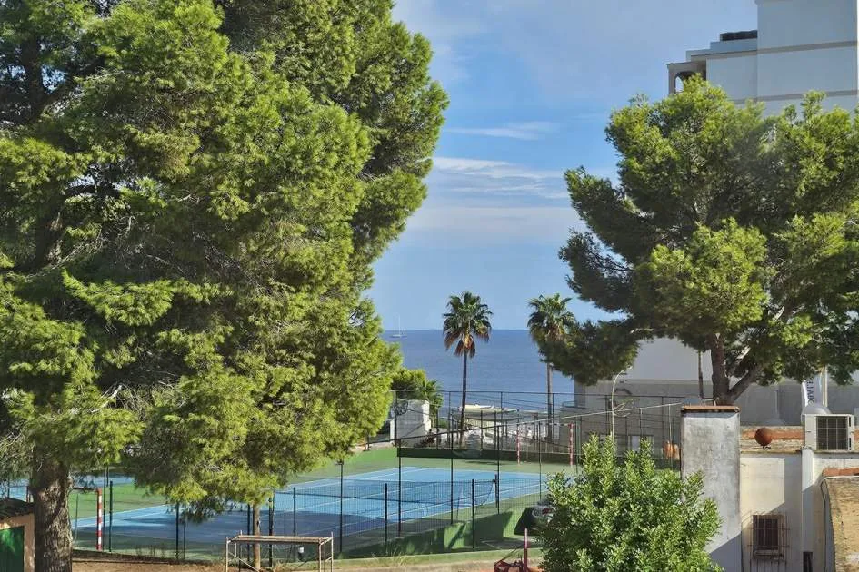 Dieses charmante Apartment befindet sich in Cala Vinyas, in unmittelbarer Nähe zum Strand sowie allen Annehmlichkeiten. Es bietet einen teilweisen Meerblick und überzeugt durch eine sehr praktische und zugleich gemütliche Raumaufteilung. Das Hauptschlafzimmer verfügt über ein Badezimmer im Raum – ein besonders Highlight der Immobilie. Zusätzlich steht ein separates Badezimmer mit Dusche zur Verfügung. Das zweite Schlafzimmer ist kompakt und eignet sich ideal als Büro, Gäste- oder Ankleidezimmer. Am Eingang befindet sich eine kleine Veranda, ergänzt durch einen weiteren Balkon, der zusätzlichen Freiraum im Außenbereich bietet. Das Apartment ist komplett möbliert und stylish ausgestattet – inklusive Handtüchern, Bettwäsche, Besteck und allem Notwendigen für den sofortigen Einzug. Die Küche verfügt über einen Wasserfilter, der Trinkwasser direkt aus dem Hahn ermöglicht. Bitte beachten Sie, dass die Wohnung über keine Klimaanlage verfügt; ein kleiner elektrischer Heizkörper und ein Ventilator ist vorhanden. Haustiere wie Katzen und kleine Hunde können angefragt werden. Das Apartment ist rauchfrei und Partys sind nicht gestattet.
