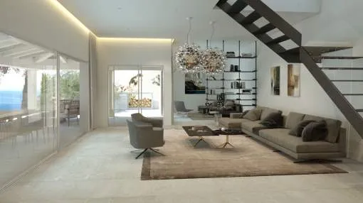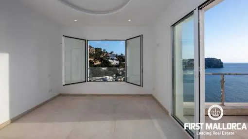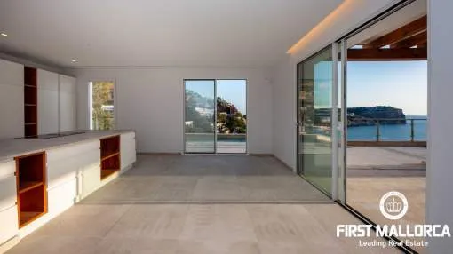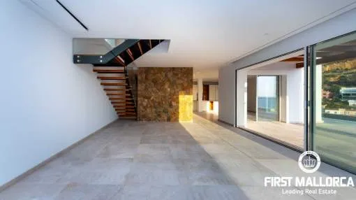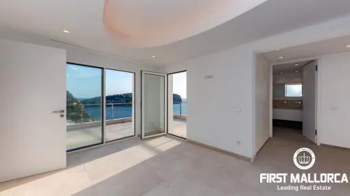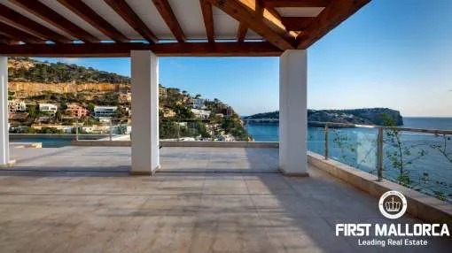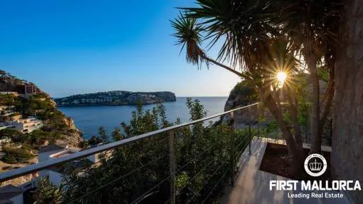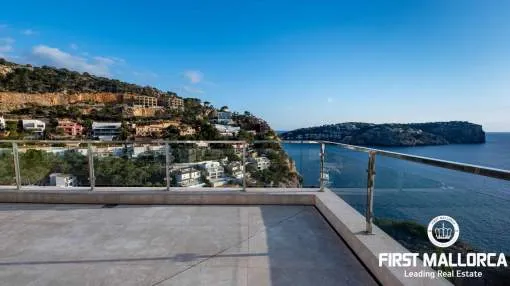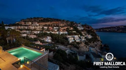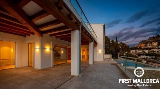 Diese Neubau Villa in Puerto de Andratx befindet sich in einer sehr privilegierten, ruhigen Lage in der Cala Moragues. Die südliche Ausrichtung bietet zum einen sehr viel Sonne den ganzen Tag über, zum anderen einen fantastischen Blick auf die Hafeneinfahrt und das Meer.