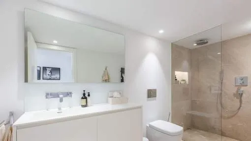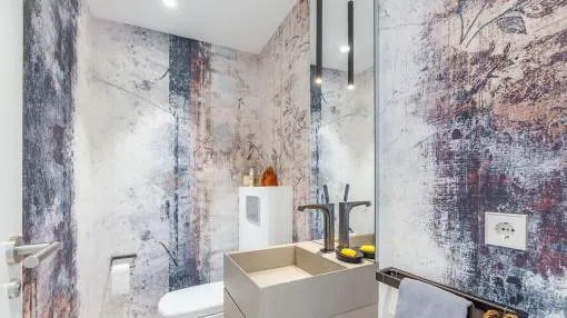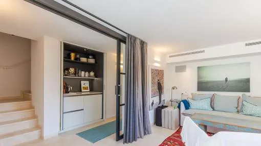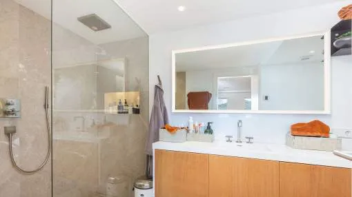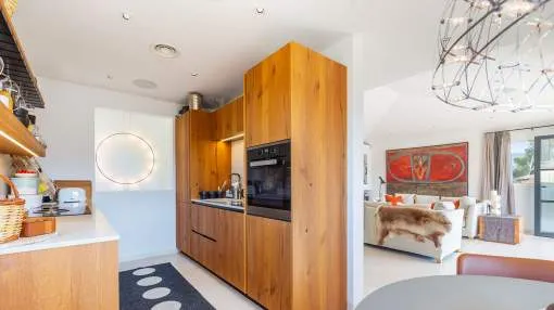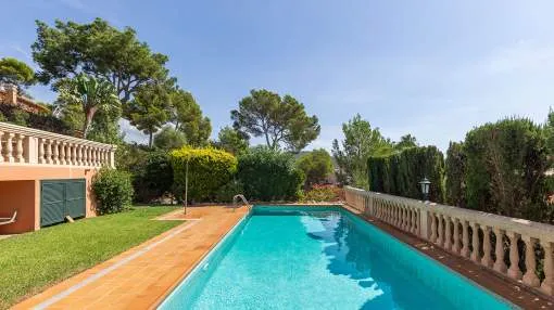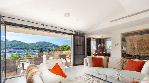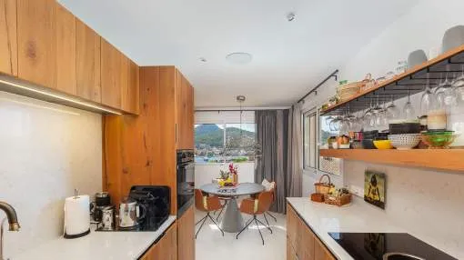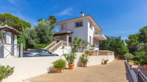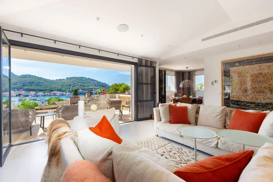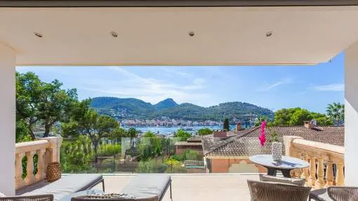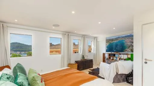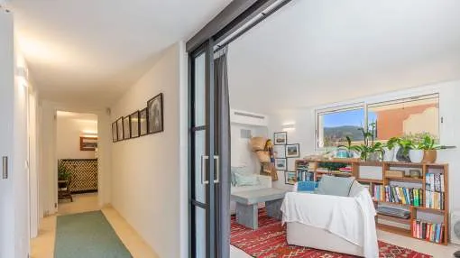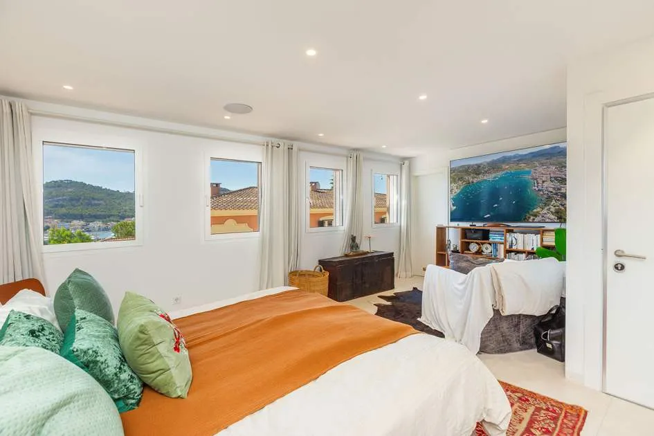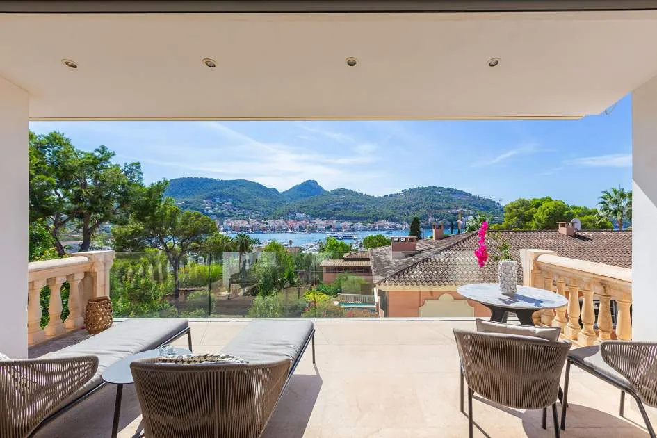 Diese charmante, kernsanierte Villa befindet sich in der malerischen Küstenstadt Port Andratx, die zu den begehrtesten Wohnorten auf der sonnenverwöhnten Insel Mallorca zählt. In der ruhigen und leicht erhöhten Wohngegend von Aldea Blanca gelegen, profitiert die Immobilie von der Nähe zum lebendigen Zentrum von Port Andratx mit seinem exklusiven Yachthafen. In der Umgebung befinden sich zahlreiche erstklassige Restaurants, Cafés und Geschäfte, die für eine abwechslungsreiche Freizeitgestaltung sorgen. Die nahegelegenen Strände und Buchten laden zu erholsamen Stunden am Mittelmeer ein und sind schnell erreichbar. Das Haus ist Teil einer Eigentümergemeinschaft mit nur vier weiteren Wohnungen, die sich in einem separaten Gebäude befinden und sich den Garten und Pool teilen. Die Villa verfügt über eine private Zufahrt, einen PKW-Stellplatz und eine gemütliche Veranda im Eingangsbereich. In der oberen Etage liegt das helle Wohnzimmer mit Essbereich, halboffener Küche sowie einer großzügigen Terrasse mit Blick auf den Hafen von Port Andratx. Drei Schlafzimmer, zwei Badezimmer, ein Gäste-WC sowie ein Hauswirtschaftsraum vervollständigen das Angebot.