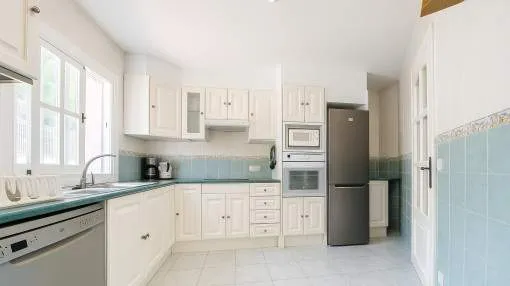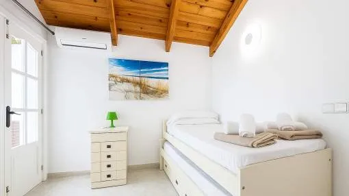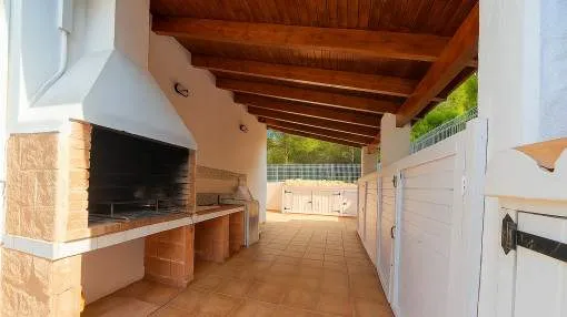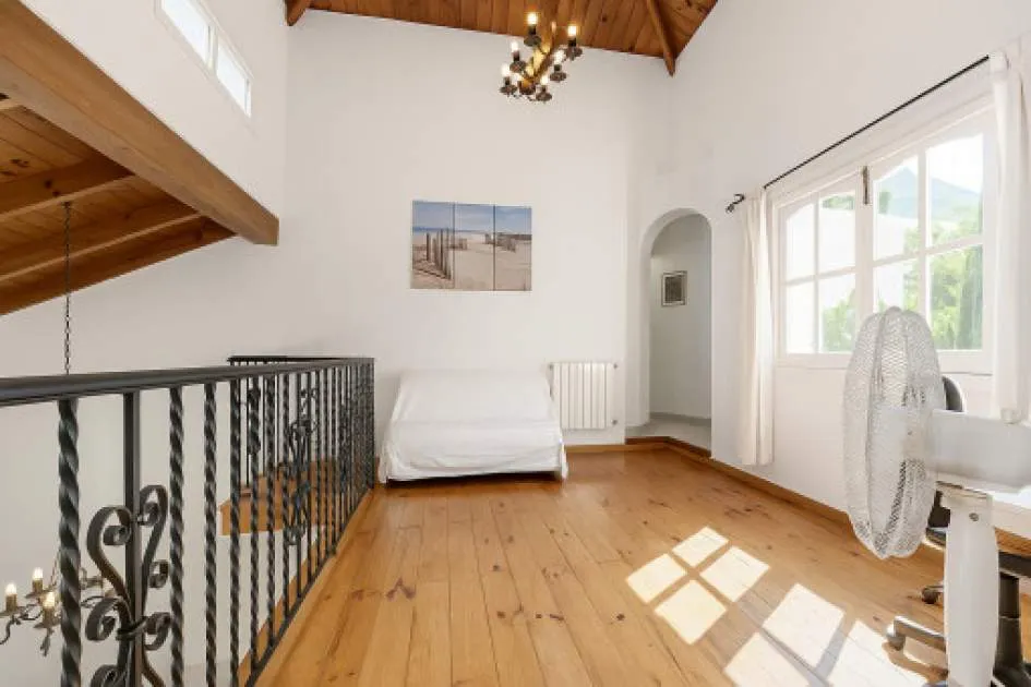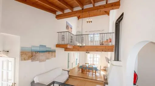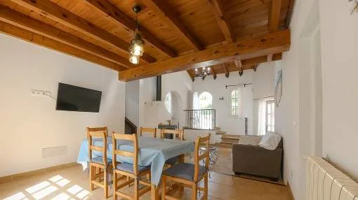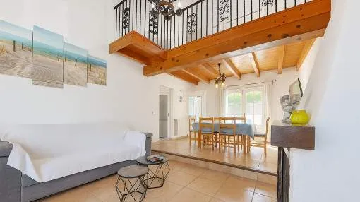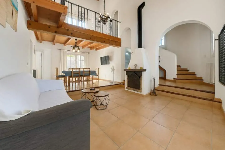 Objektbeschreibung: Diese zweigeschossige Villa wurde 2002 erbaut und liegt im Herzen der Urbanisation Son Serra de Marina, nur wenige Gehminuten von einem der schönsten Naturstrände der Insel entfernt, der direkt an das bekannte Natur- und Finca-Anwesen Son Real anschließt. Das Haus steht zentral auf einem 317 m² großen Grundstück und bietet eine bebaute Fläche von ca. 145 m². Die Zufahrt dient zugleich als großzügiger Stellplatz für bis zu vier Fahrzeuge. Der Außenbereich überzeugt mit einem gepflegten Rasen, einem privaten Pool mit Sonnenterrassen sowie einem überdachten BBQ-Bereich. Über die vordere Terrasse gelangt man ins Haus. Der Eingangsbereich öffnet sich zum hellen Wohn- und Essbereich mit Kamin und direktem Zugang zum Poolbereich. Auf derselben Ebene befinden sich zudem ein Gäste-WC, die separate, voll ausgestattete Küche mit Hauswirtschaftsbereich sowie das Hauptschlafzimmer mit eigenem Bad en suite. Eine im ibizenkischen Stil gestaltete Treppe mit Kalkgeländer führt auf die offene Galerie, von der aus man den Wohnbereich überblickt. Hier befinden sich zwei weitere Schlafzimmer, die sich ein modernes Duschbad teilen. Die Architektur ist offen und luftig mit doppelter Deckenhöhe und sichtbaren Deckenbalken, was dem Haus mediterranen Charme verleiht. Die Villa ist sofort bezugsbereit und verfügt über eine Ferienvermietungslizenz, die übernommen werden kann. Rendite aus Ferienvermietung: Mit dem „Porta Holiday Renditerechner“ können Sie zur ersten Orientierung unverbindlich Ihre potenziellen Einnahmen aus einer möglichen Ferienvermietung berechnen. Hinweis: Aufgrund der aktuellen Gesetzeslage kann es in bestimmten Gemeinden zu einer Beschränkung der Vermietbarkeit kommen bzw. werden keine neuen touristischen Lizenzen mehr vergeben. Ihr Porta Mallorquina Immobilienberater berät Sie gerne, ob die von Ihnen gewählte Immobilie davon betroffen ist. Hier geht’s zum Renditerechner. Lage & Umgebung: Son Serra de Marina – Naturstrand, Ruhe und mediterranes Lebensgefühl Son Serra de Marina liegt an der Nordküste von Mallorca und gilt als einer der letzten authentischen Küstenorte der Insel. Der kleine Ort besticht durch seinen langen Naturstrand, der direkt in das bekannte Naturschutzgebiet Son Real übergeht. Hier genießen Bewohner und Besucher Ruhe, Weite und unberührte Landschaft – fernab vom Massentourismus. Die Urbanisation ist geprägt von freistehenden Villen und charmanten Ferienhäusern. Einkaufsmöglichkeiten, kleine Restaurants und Strandbars sind bequem erreichbar. Besonders beliebt ist Son Serra de Marina bei Naturliebhabern, Familien und Wassersportlern, die hier ideale Bedingungen zum Baden, Kitesurfen oder Stand-up-Paddeln finden.