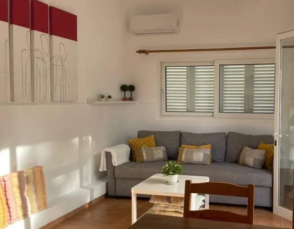 Die Wohnung verfügt über ein komfortables Wohnzimmer mit Klimaanlage (warm/kalt), eine kleine, voll ausgestattete Küche sowie eine Waschmaschine. Für zusätzlichen Komfort stehen Ihnen Fernseher und Internetanschluss zur Verfügung. Genießen Sie Ihren Morgenkaffee oder ein Glas Wein am Abend auf der hübschen vorderen Terrasse oder entspannen Sie auf der privaten Seitenterrasse, die direkt an das Hauptschlafzimmer angrenzt.
